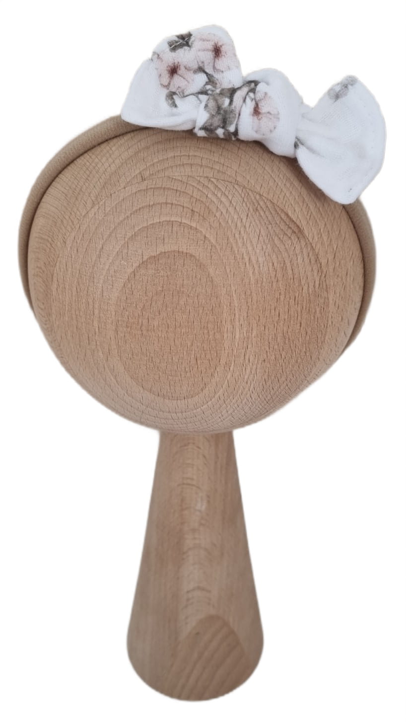 Bezuciskowa opaska - Muślinowy Supełek to pięknie prezentująca się kokardka, umocowana na elastycznej opasce, dzięki czemu pasuje zarówno na malutkie jak i większe główki.