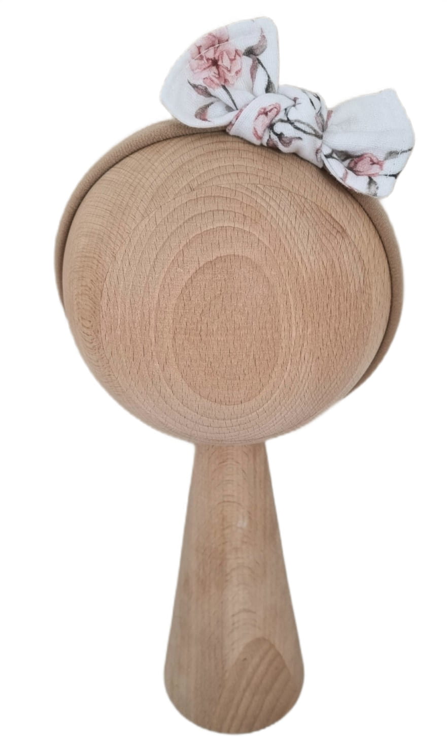 Bezuciskowa opaska - Muślinowy Supełek to pięknie prezentująca się kokardka, umocowana na elastycznej opasce, dzięki czemu pasuje zarówno na malutkie jak i większe główki.