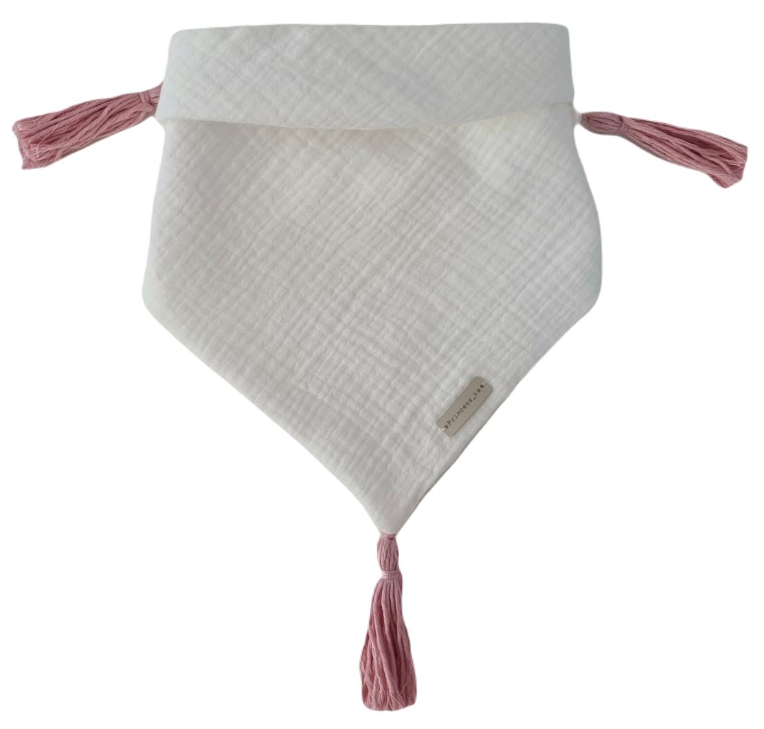 CHUSTA Muślinowa Ecru Z CHWOSTAMI Róż