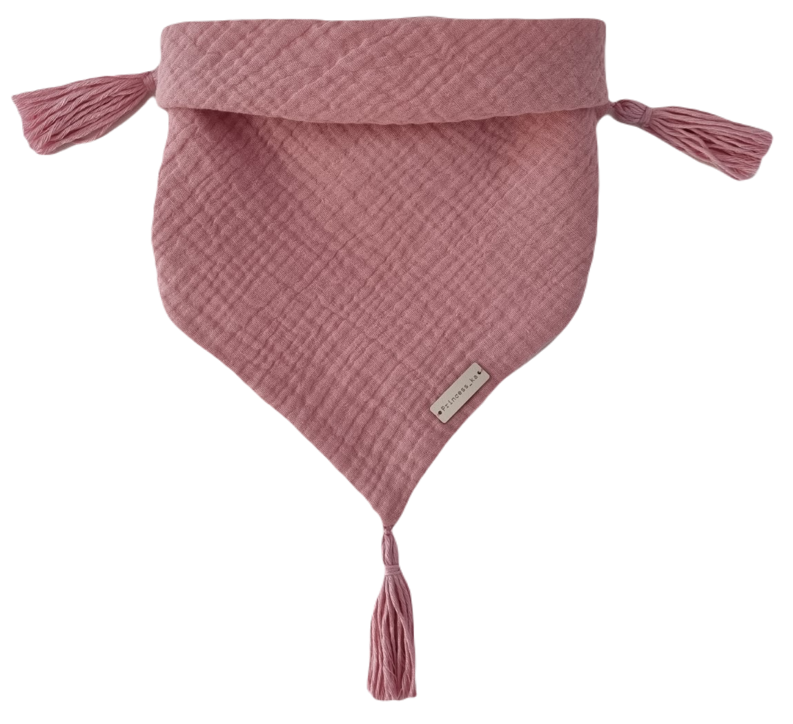 CHUSTA Muślinowa Pudrowy Róż Z CHWOSTAMI Róż