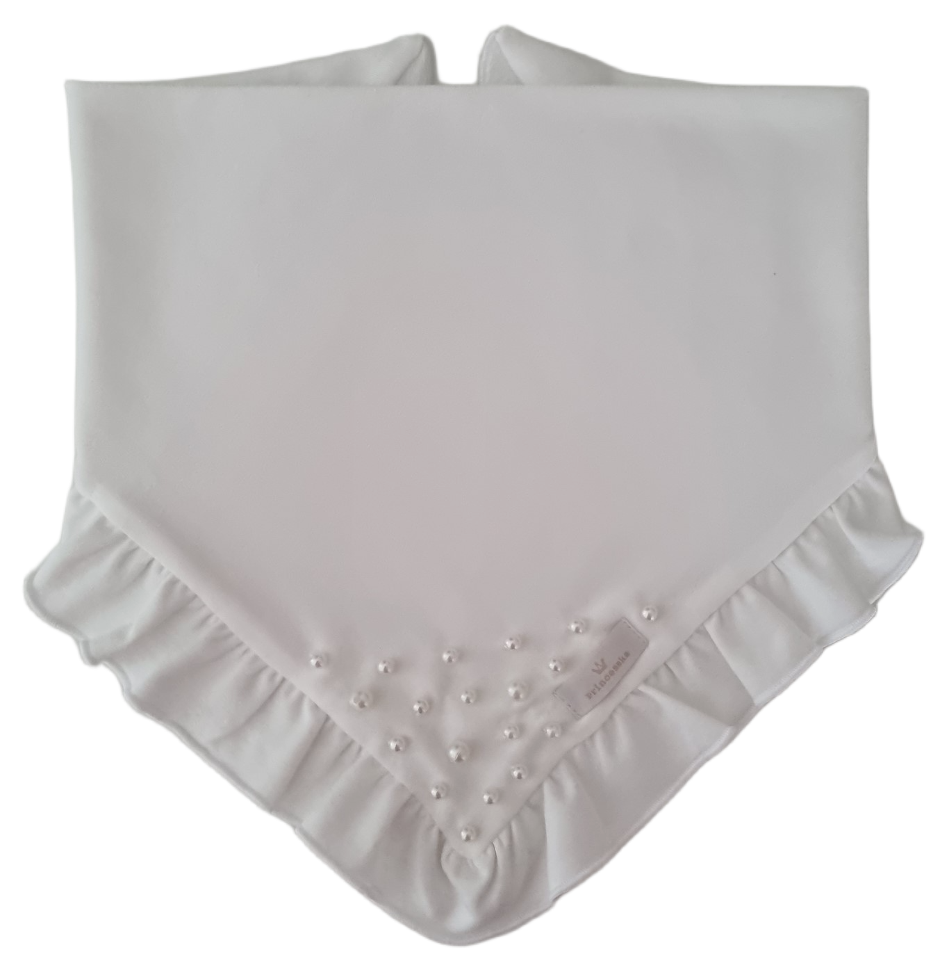 CHUSTA Z FALBANKĄ I KORALIKAMI Śmietankowa Biel