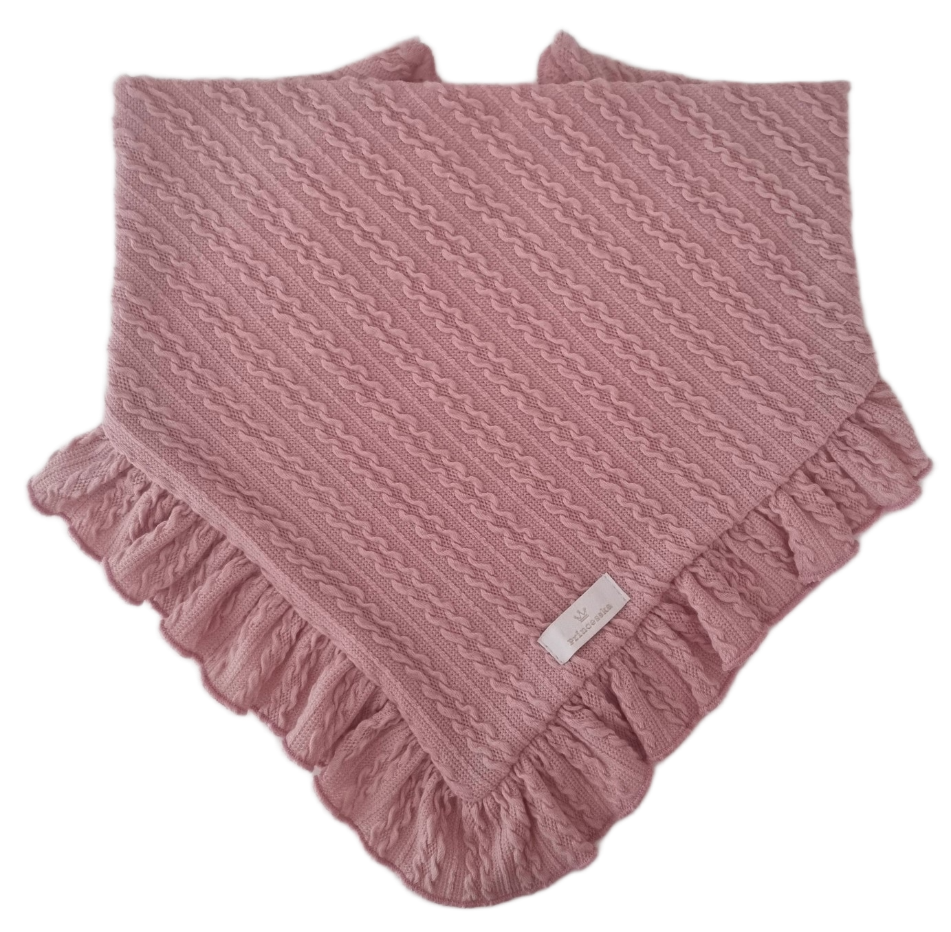 CHUSTA Z FALBANKĄ SWETEREK WARKOCZ Pudrowy Róż