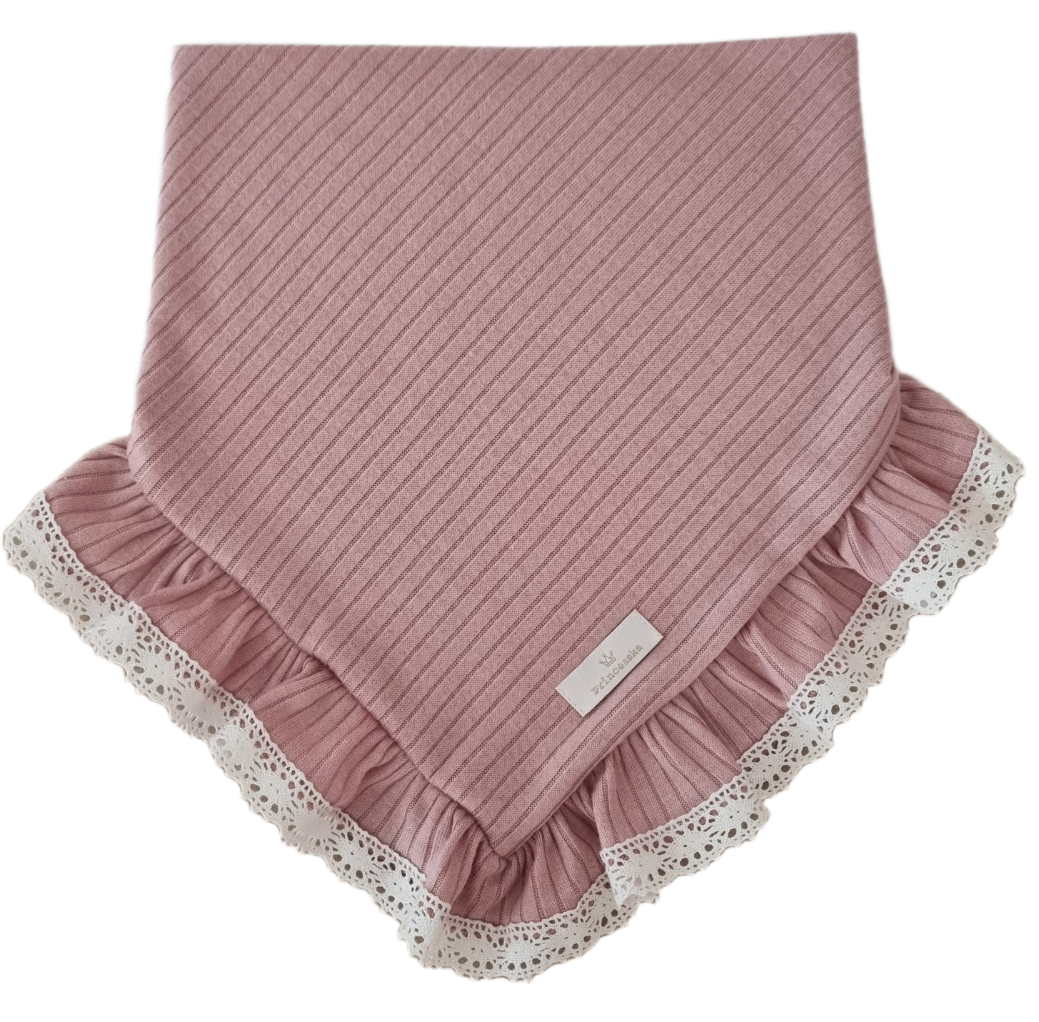 CHUSTA Z KORONKOWĄ FALBANKĄ sweterek prążek Pudrowy Róż