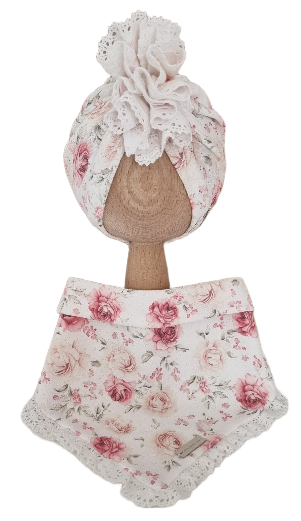 Piękny ażurkowy komplet turban z falbanką oraz chusta obszyte szydełkową koronką to nasza propozycja na ciepły wiosenno-letni czas.