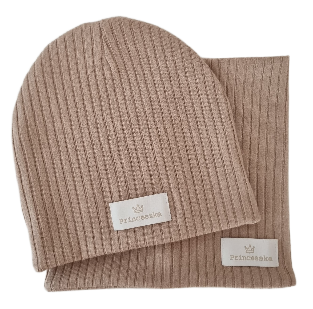 KOMPLET CZAPKA I KOMIN sweterek prążek Ciemny Beż