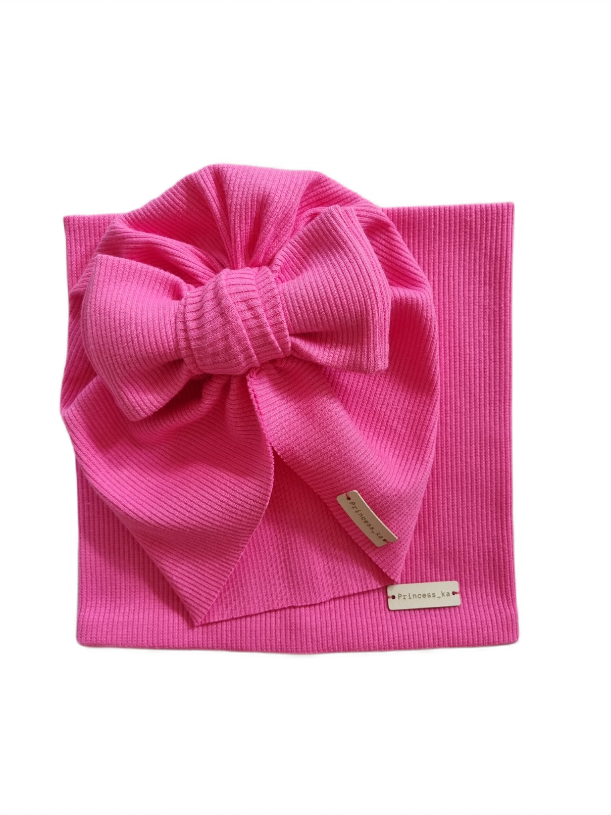 Piękny komplet TURBAN BIG BOW I KOMIN wykonany z wysokojakościowej, bardzo elastycznej dzianiny prążkowanej.