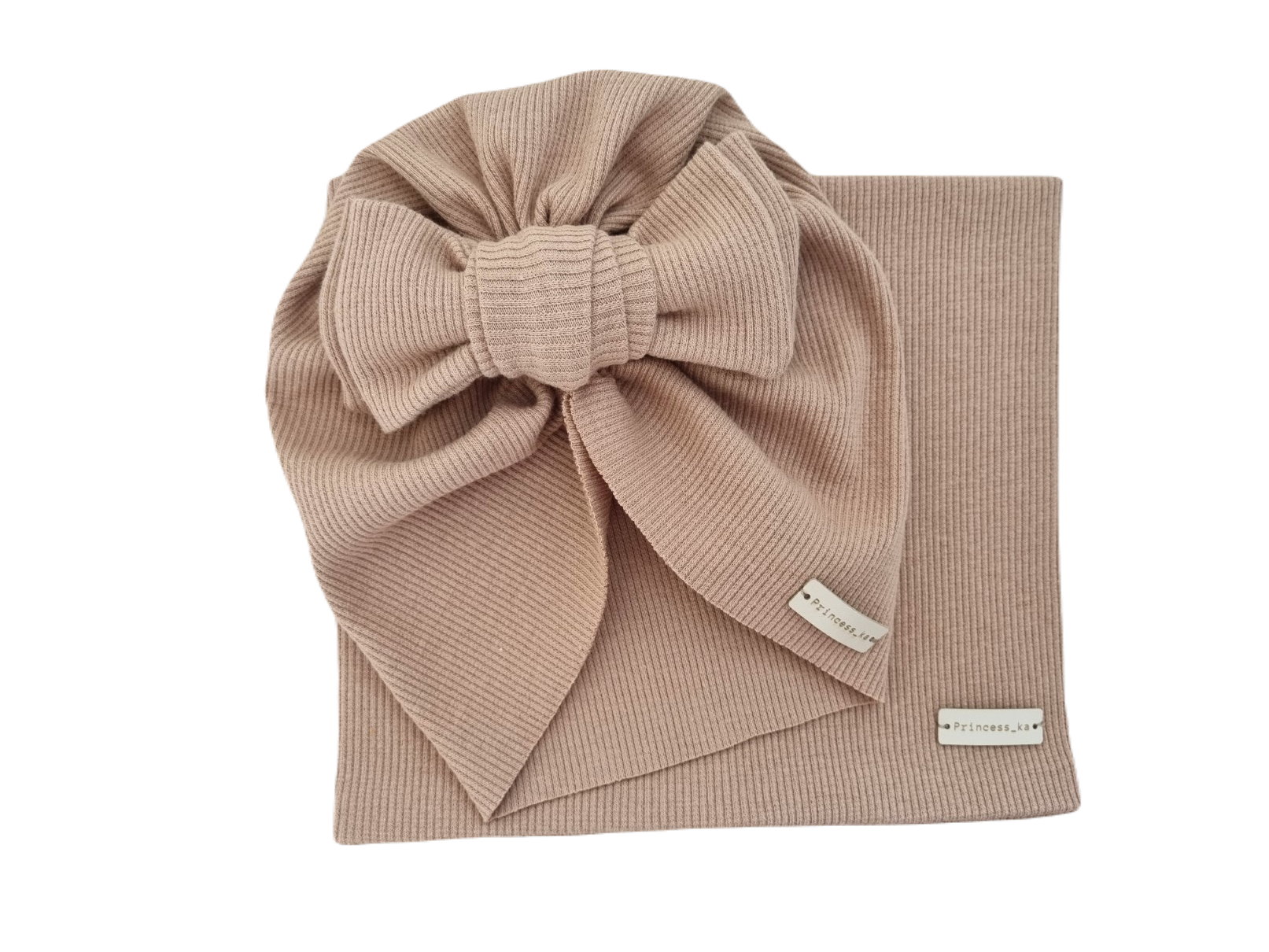 KOMPLET PRĄŻEK TURBAN BIG BOW I KOMIN Ciemny Beż