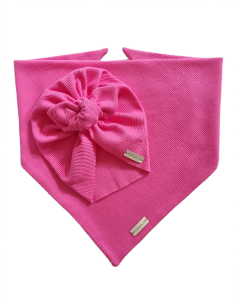 Piękny komplet TURBAN MOTYLEK I CHUSTA wykonany z wysokojakościowej, bardzo elastycznej dzianiny prążkowanej.