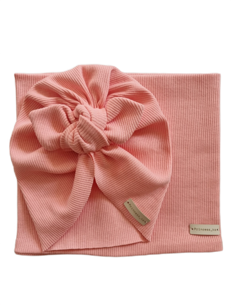 KOMPLET PRĄŻEK TURBAN MOTYLEK I KOMIN Cukierkowy Róż