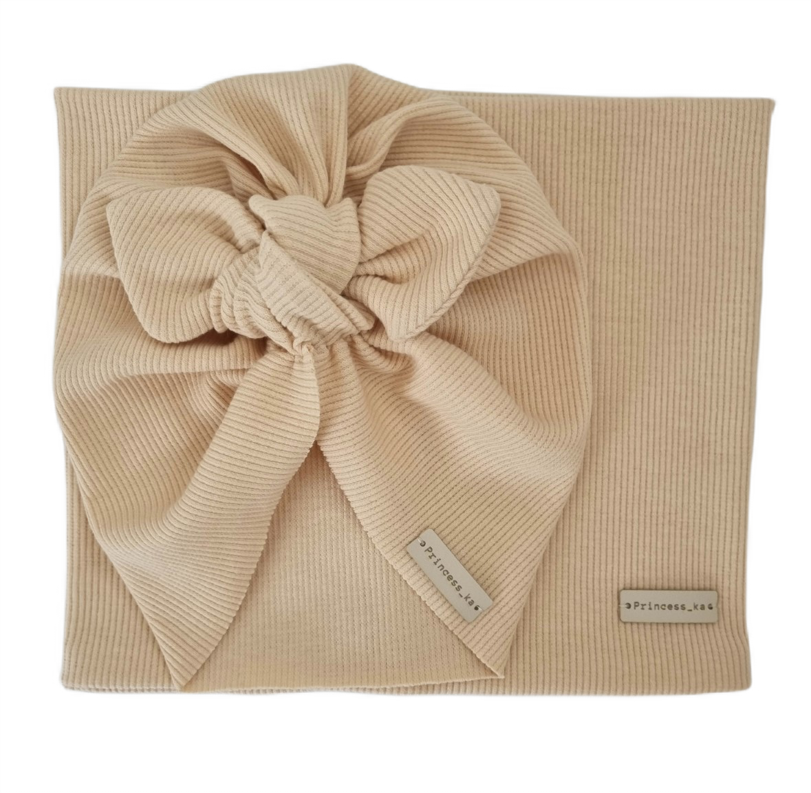 KOMPLET PRĄŻEK TURBAN MOTYLEK I KOMIN Krem