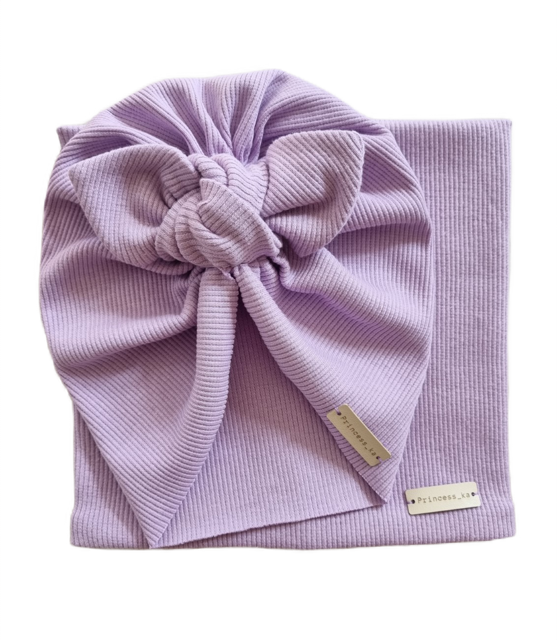 Piękny komplet TURBAN MOTYLEK I KOMIN wykonany z wysokojakościowej, bardzo elastycznej dzianiny prążkowanej.