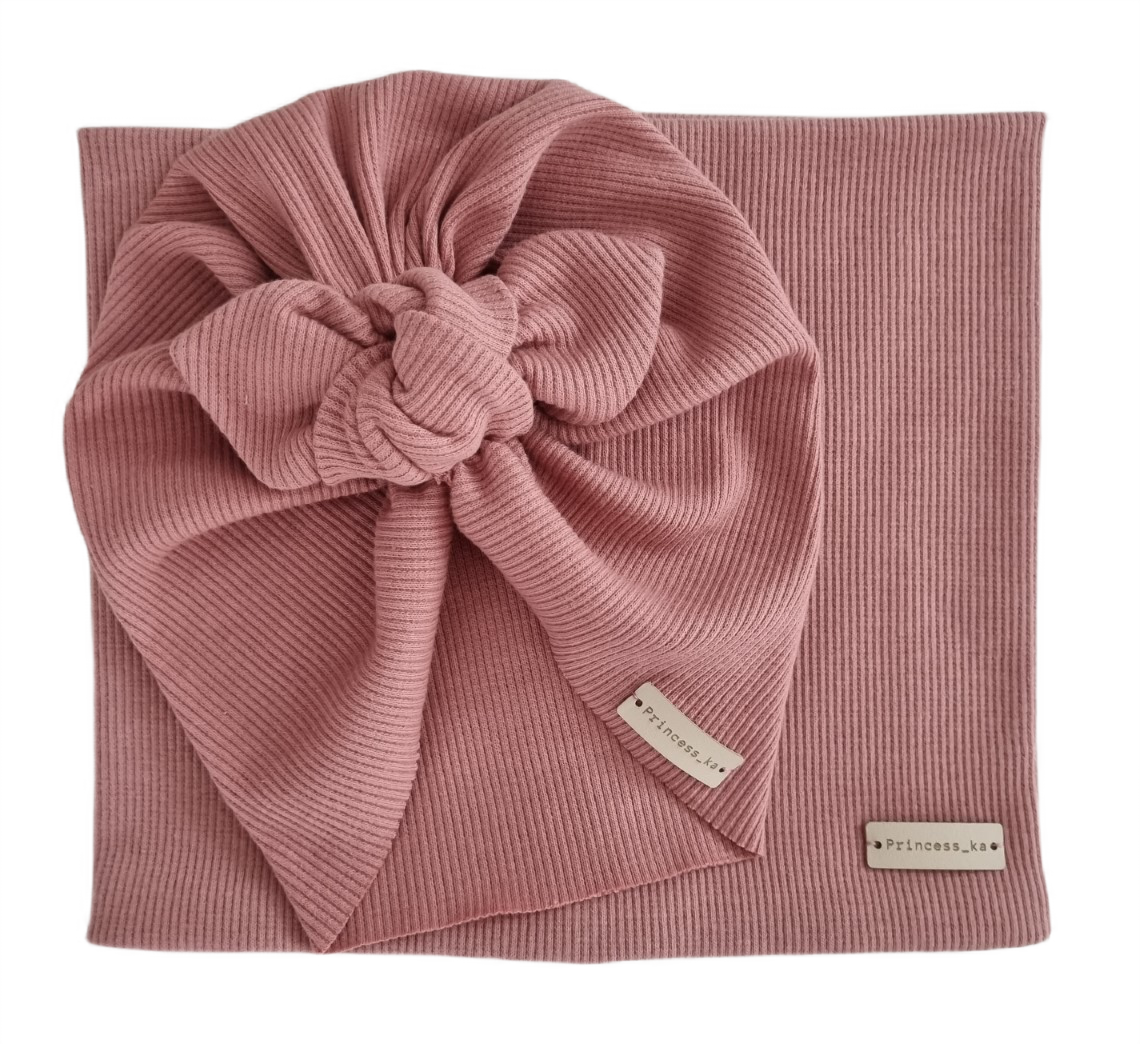 KOMPLET PRĄŻEK TURBAN MOTYLEK I KOMIN Pudrowy Róż