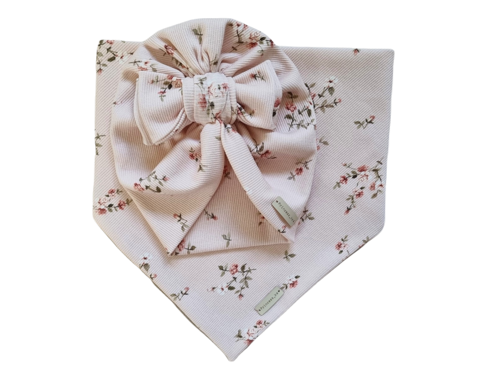 KOMPLET PRĄŻEK TURBAN PODWÓJNY BIG BOW I CHUSTA Drobne Różyczki Róż