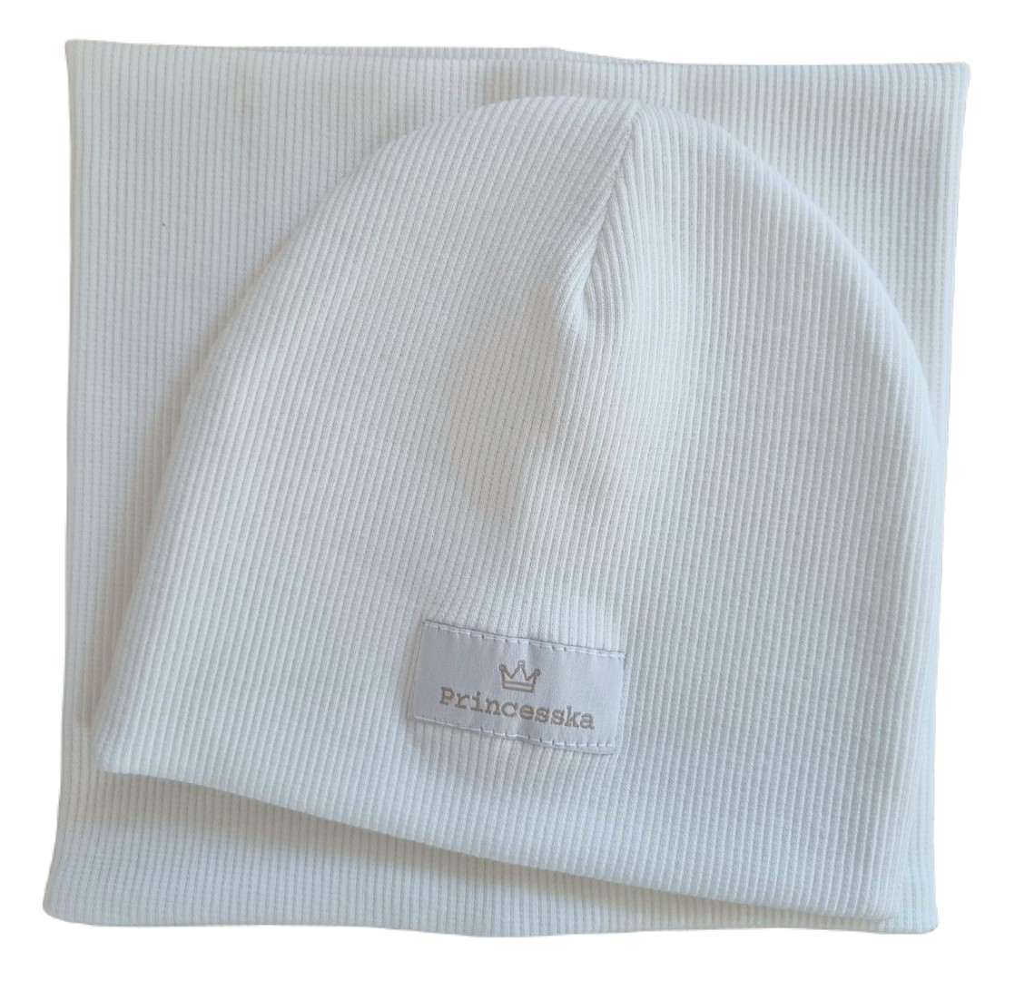 KOMPLET PRINCESSKA CZAPKA I KOMIN Biel