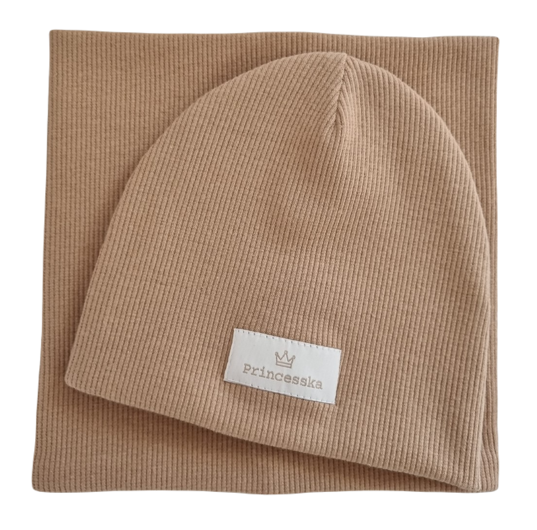 KOMPLET PRINCESSKA CZAPKA I KOMIN Ciemny Beż