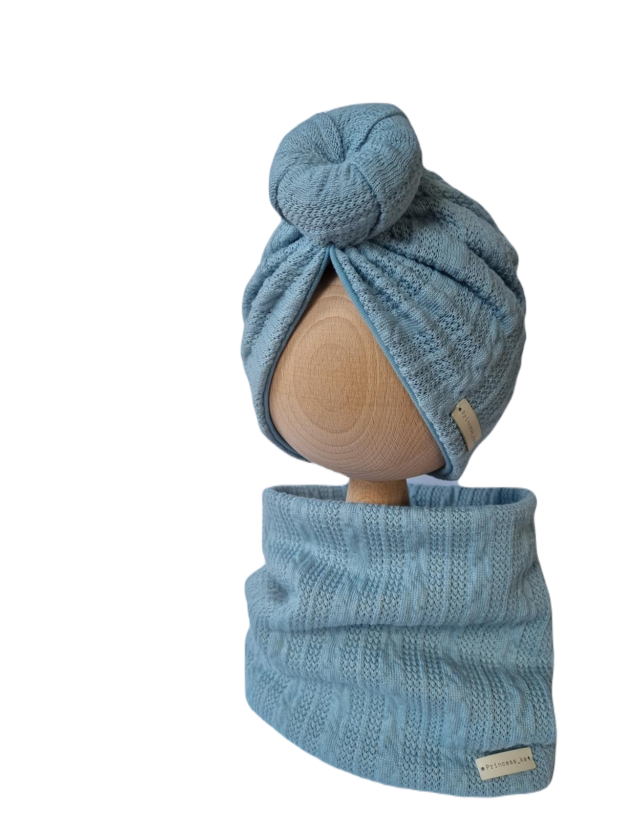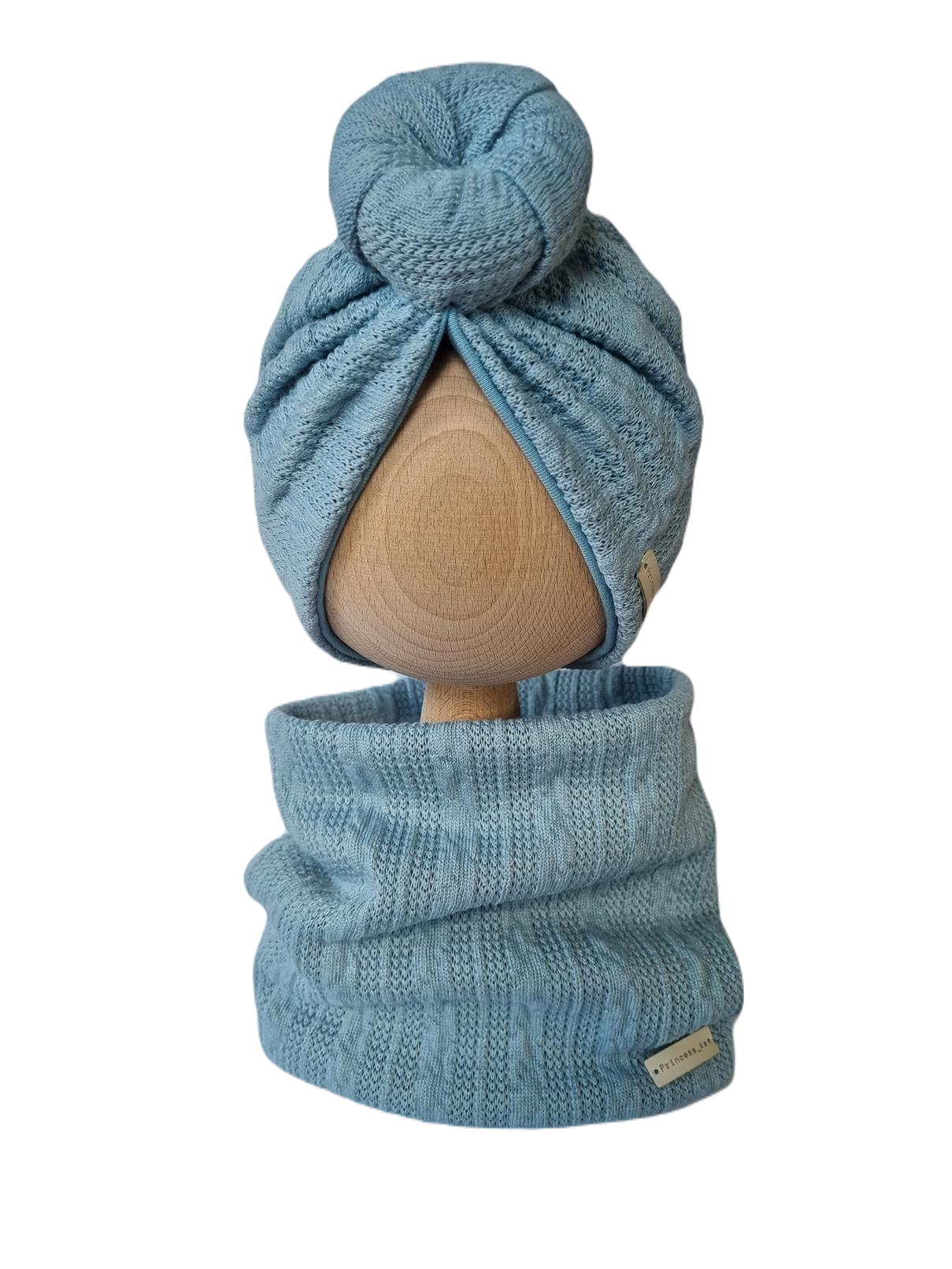 KOMPLET SWETERKOWY TURBAN PODWÓJNY DONUT I KOMIN Morski