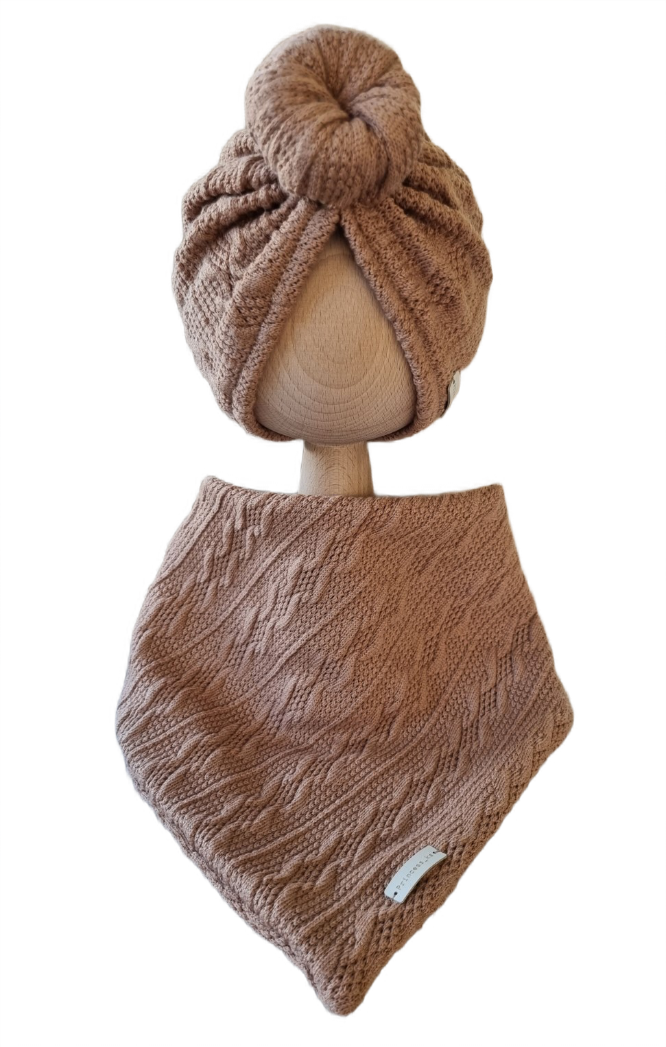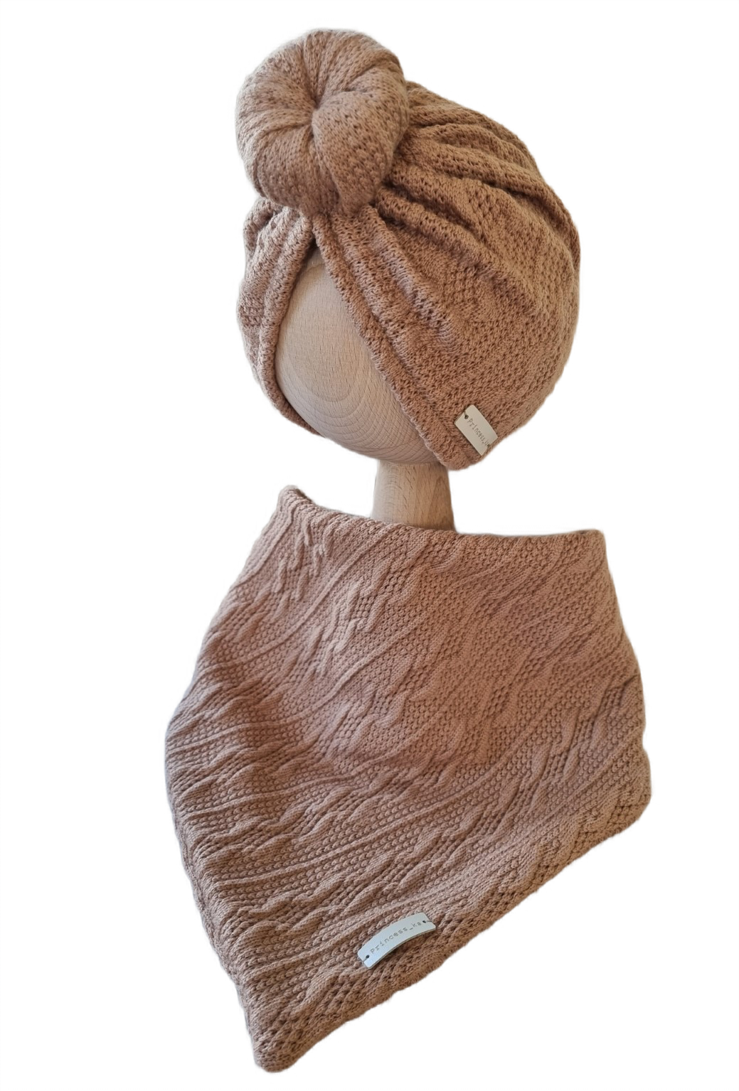KOMPLET SWETERKOWY TURBAN POJEDYNCZY DONUT I CHUSTA Brązowy