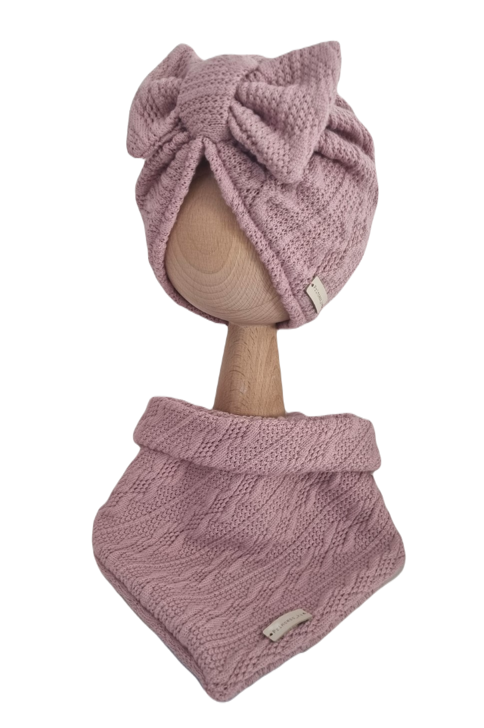 KOMPLET SWETERKOWY TURBAN POJEDYNCZY KOKARDA I CHUSTA Pudrowy Róż
