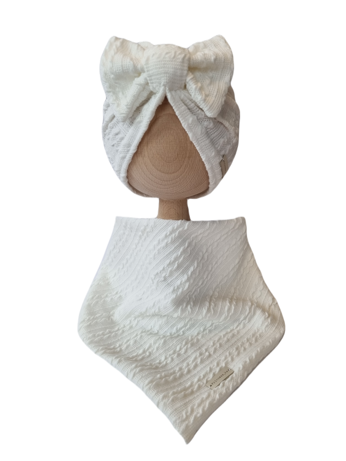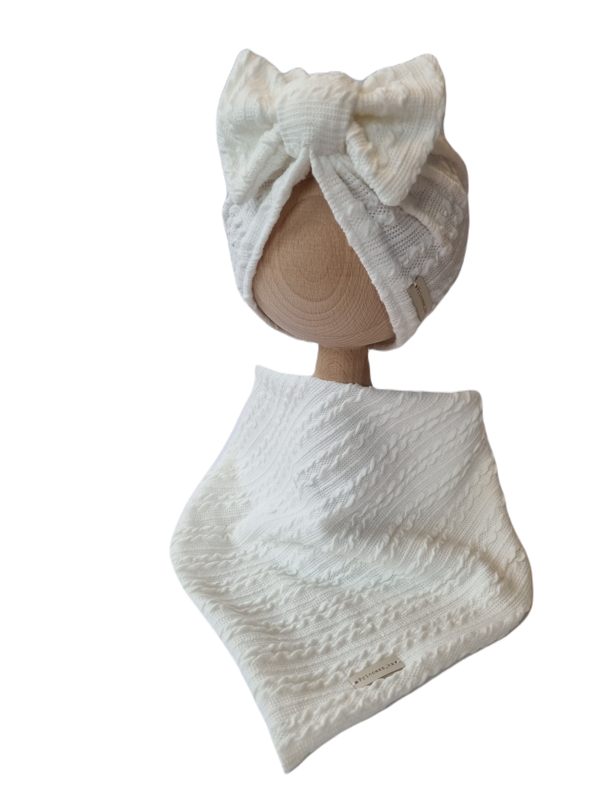 KOMPLET SWETERKOWY TURBAN POJEDYNCZY KOKARDA I CHUSTA Śmietankowa Biel