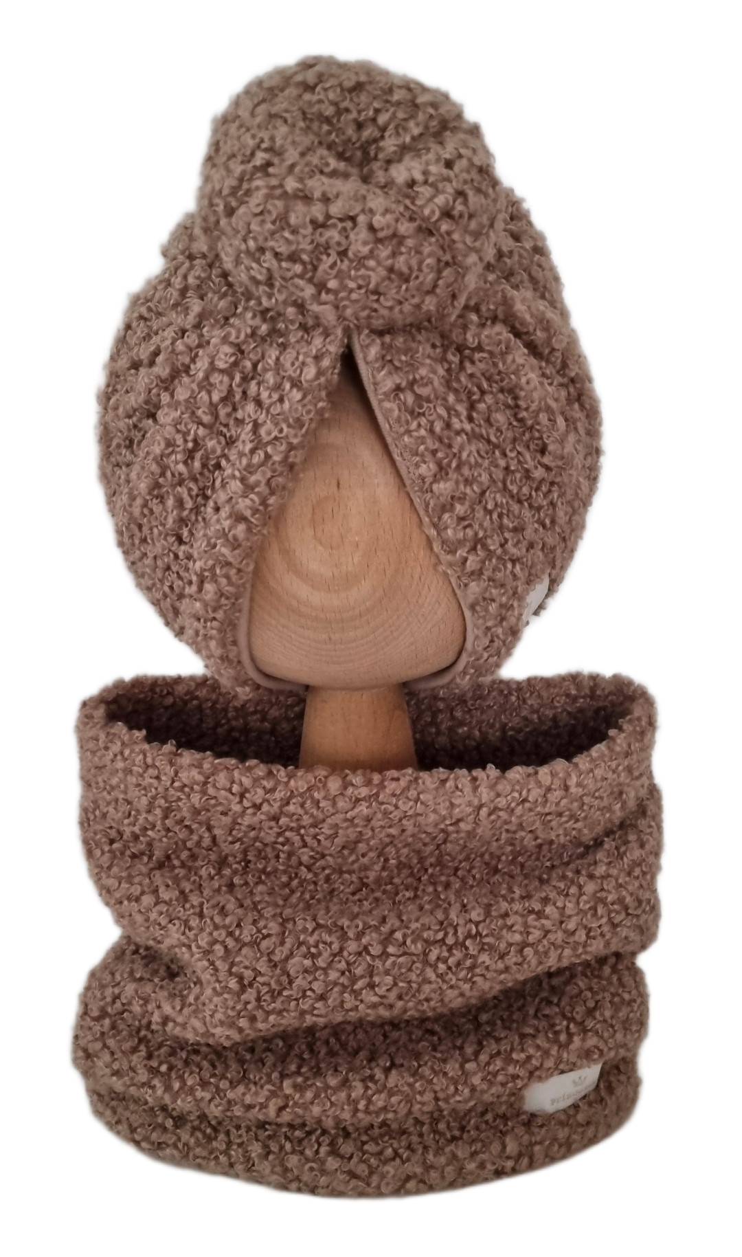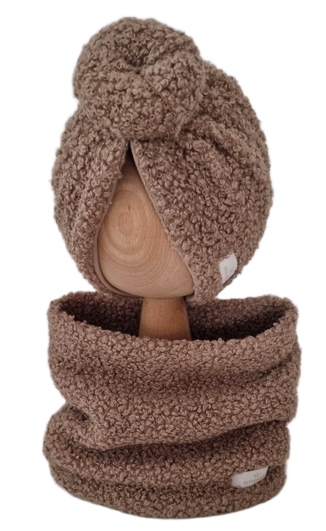 KOMPLET TURBAN DONUT BOUCLE I KOMIN Ciemny Beż