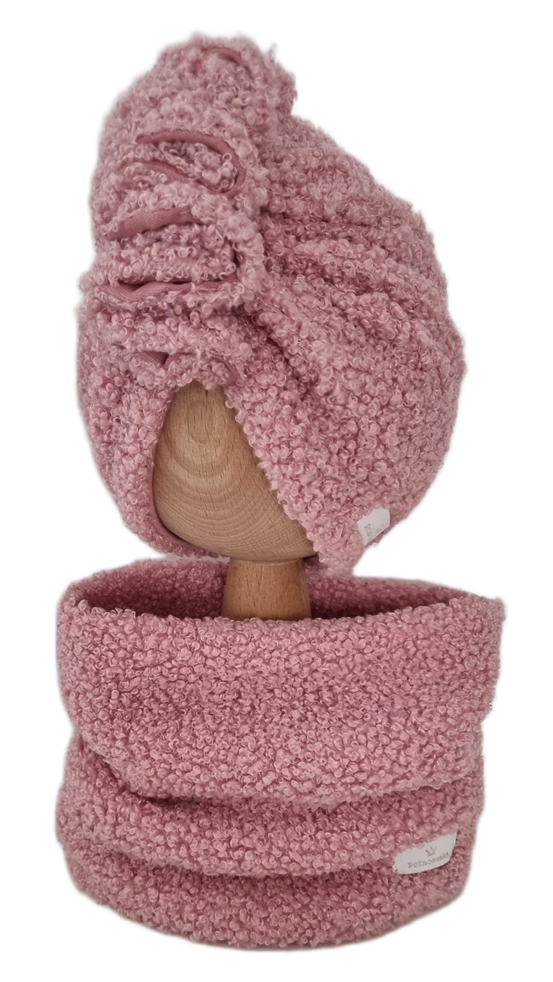 KOMPLET TURBAN FALBANKA BOUCLE I KOMIN Pudrowy Róż