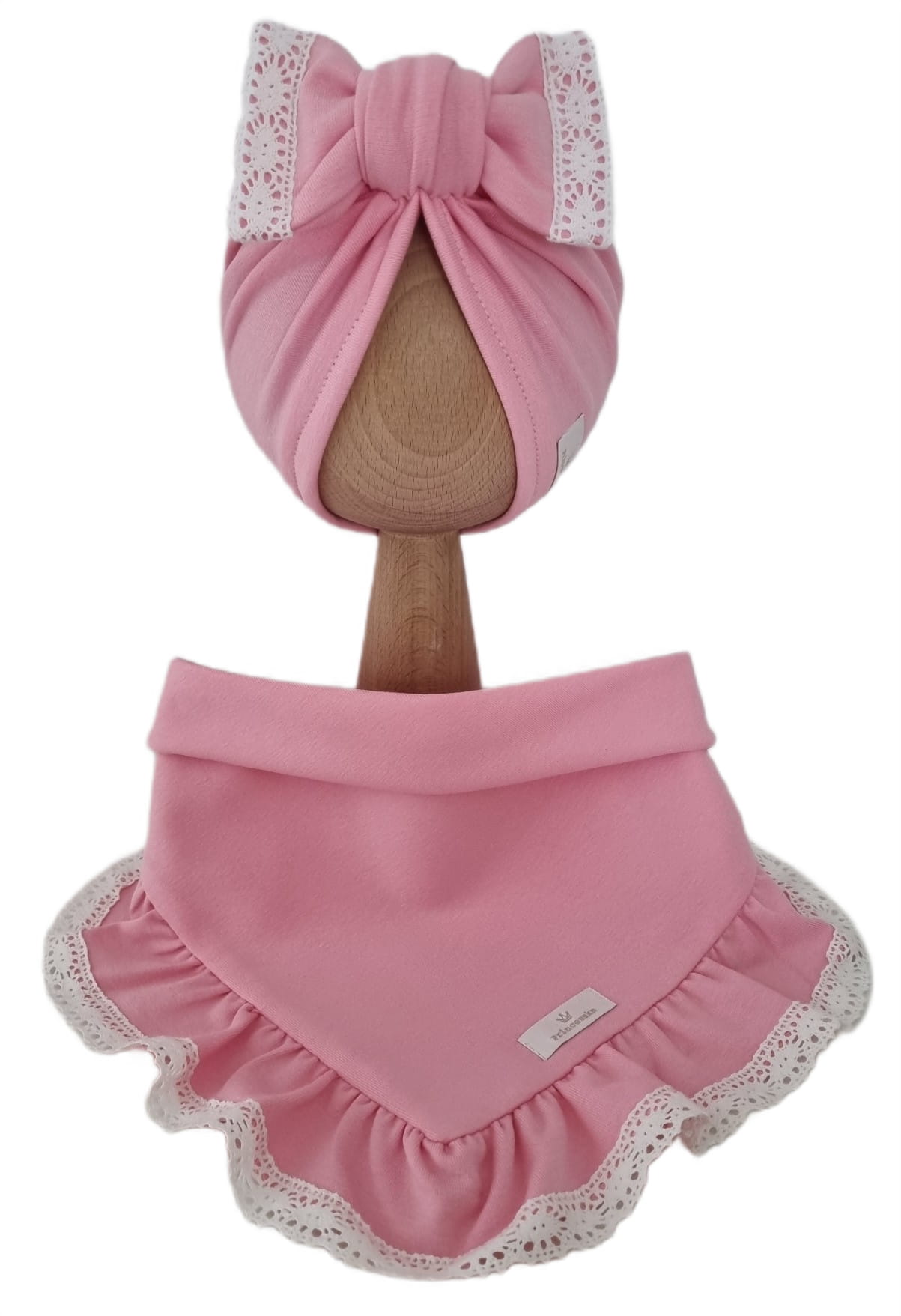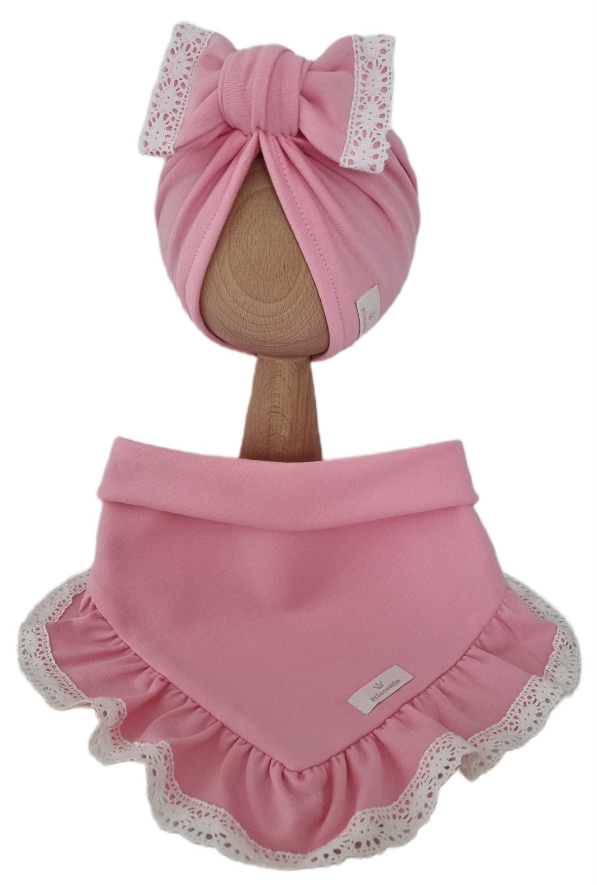 KOMPLET TURBAN KOKARDA I CHUSTA Z FALBANKĄ - KORONKA Róż