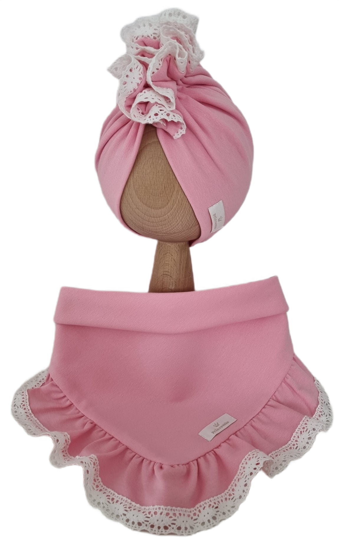 KOMPLET TURBAN PODWÓJNY FALBANKA I CHUSTA Z FALBANKĄ - KORONKA Róż