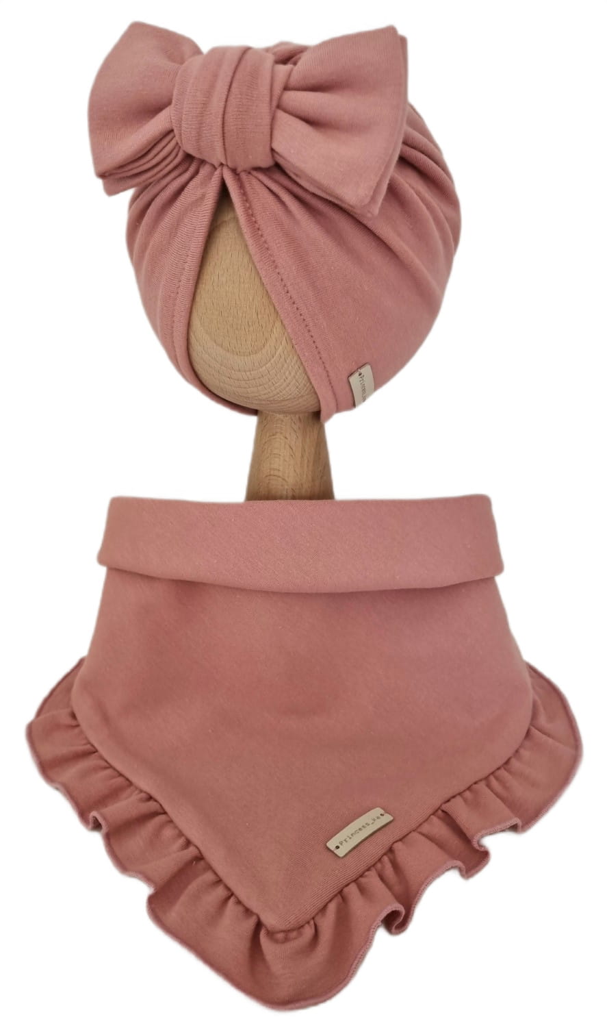 KOMPLET TURBAN POJEDYNCZY BIG BOW I CHUSTA Z FALBANKĄ Pustynny Róż
