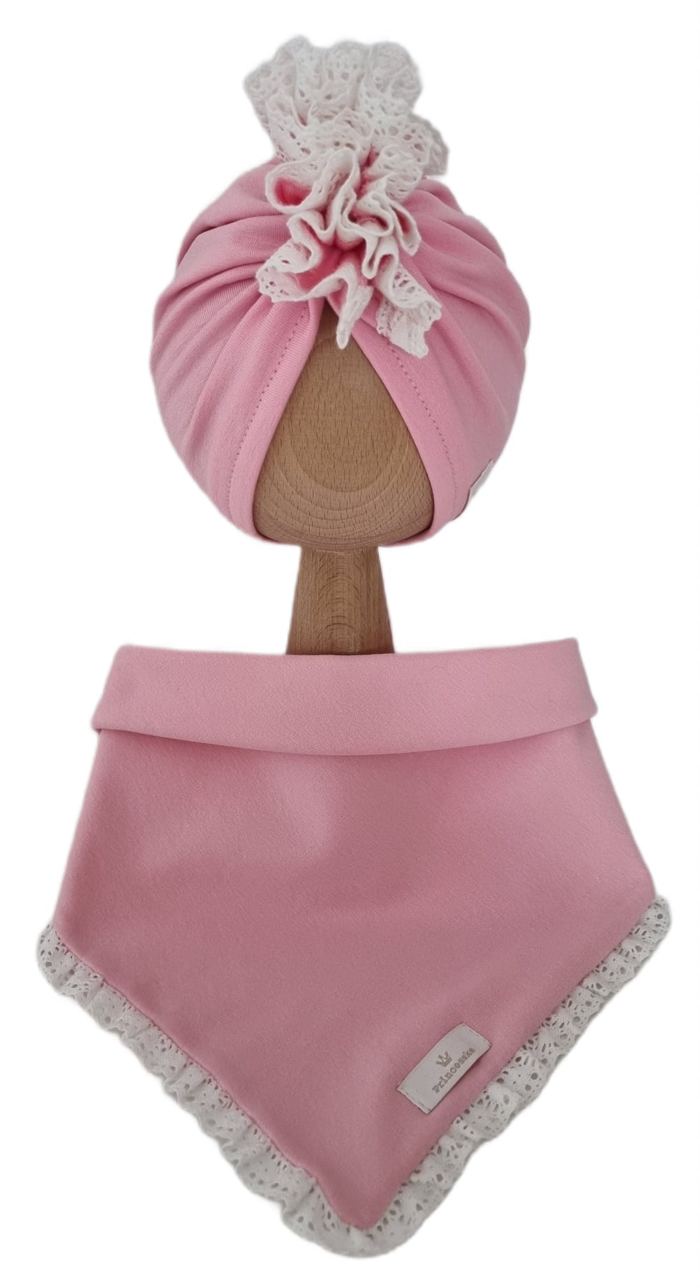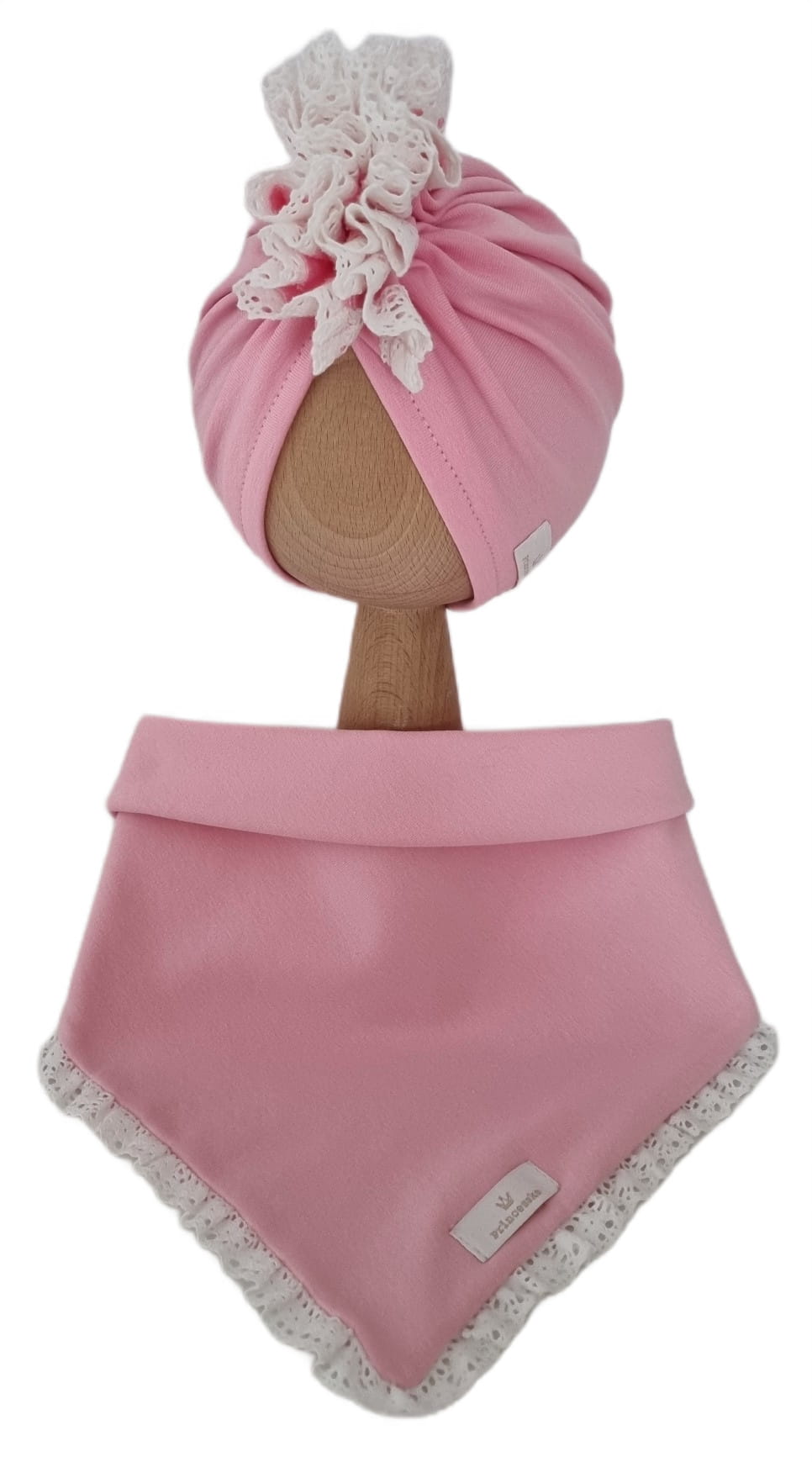 KOMPLET TURBAN POJEDYNCZY FALBANKA I CHUSTA Z KORONKĄ Róż