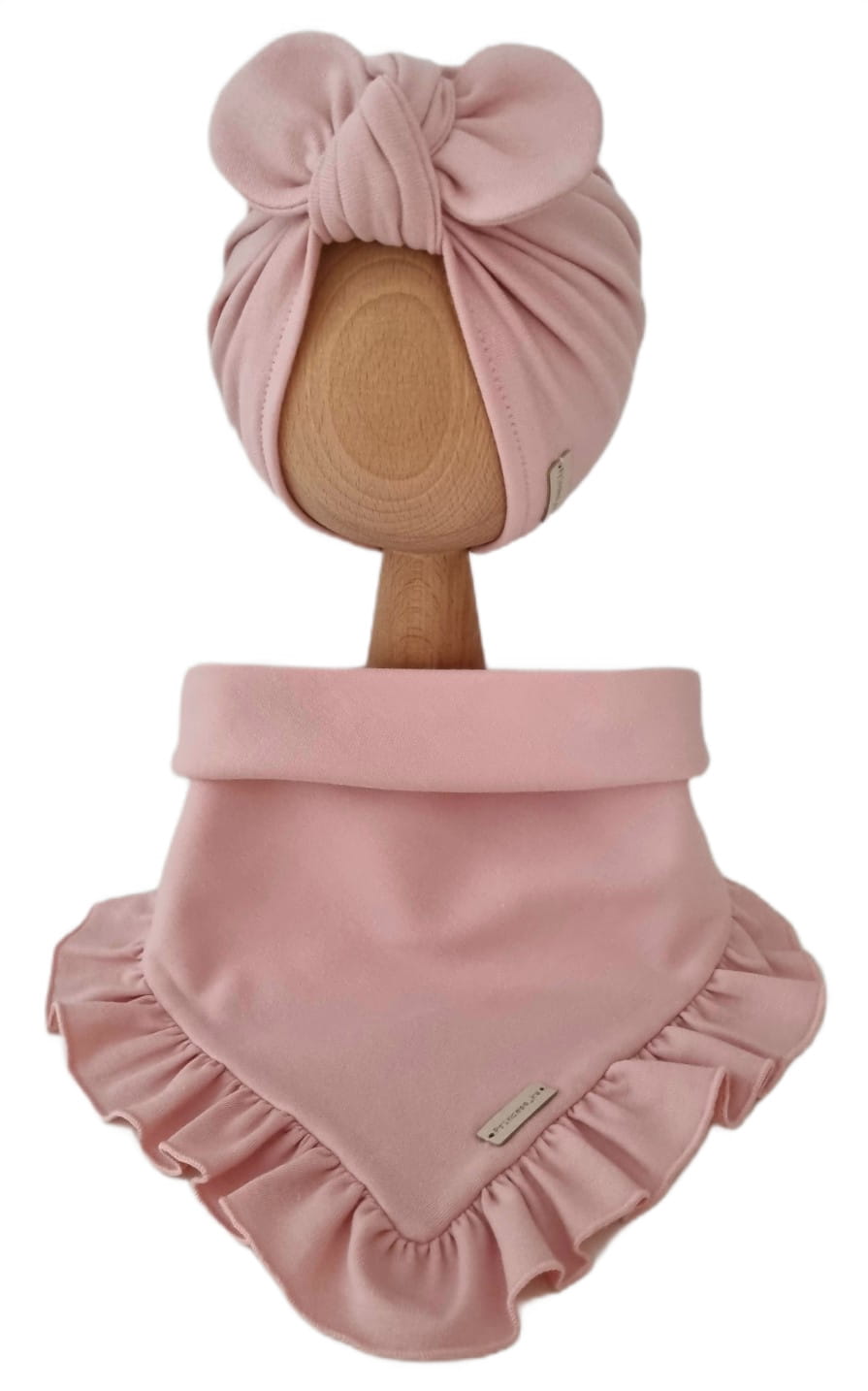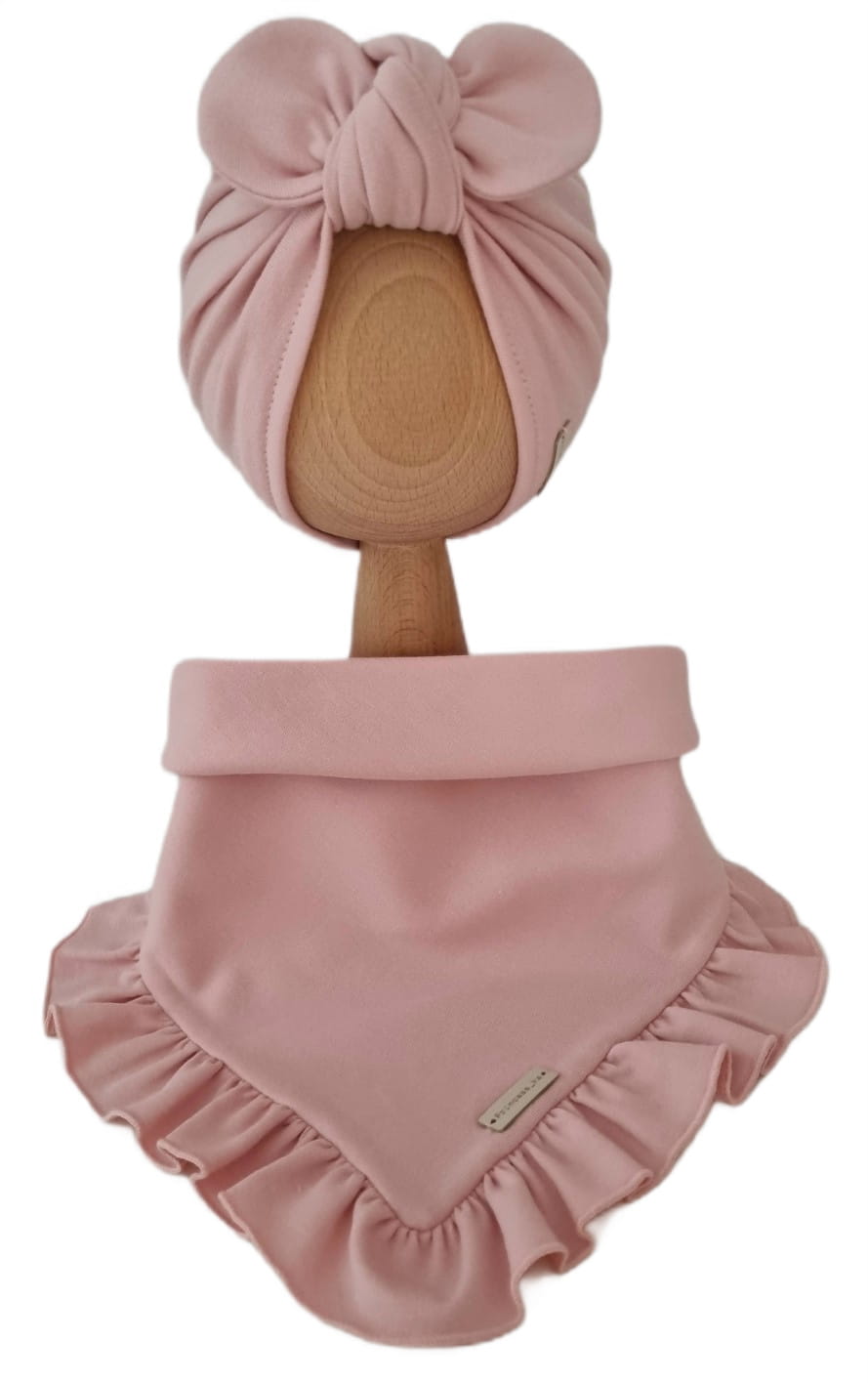 KOMPLET TURBAN POJEDYNCZY SPLOTKA I CHUSTA Z FALBANKĄ Jasny Róż
