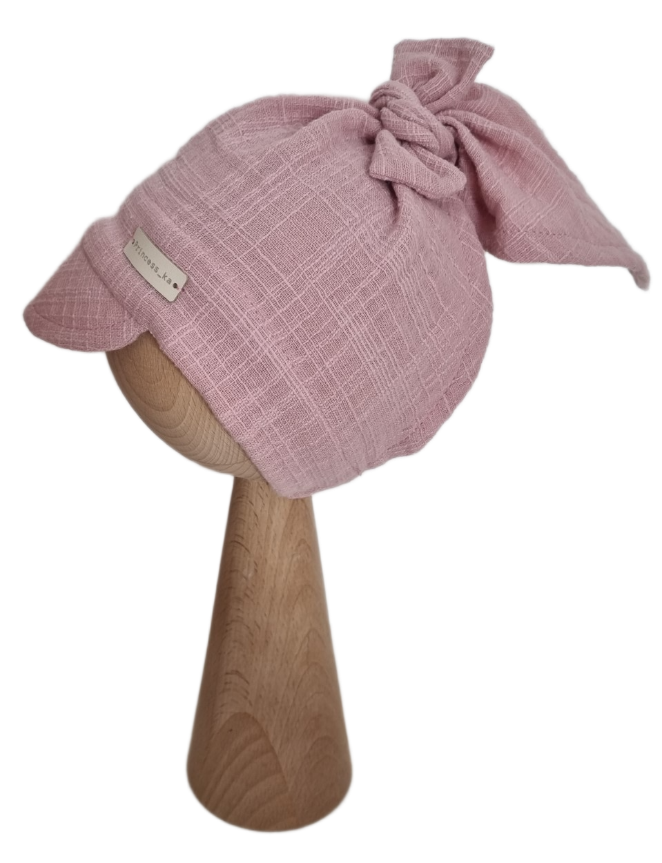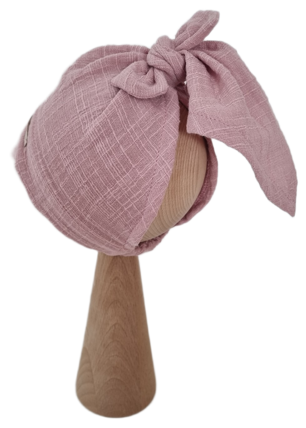 MUŚLIN LEN CHUSTKA Z DASZKIEM NA GUMCE Pudrowy Róż