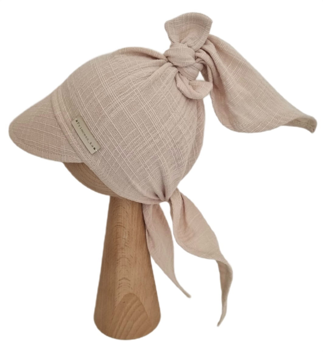 Muślinowa chustka z daszkiem idealnie osłoni główkę przed słońcem, zapewniając komfort zabaw na świeżym powietrzu.