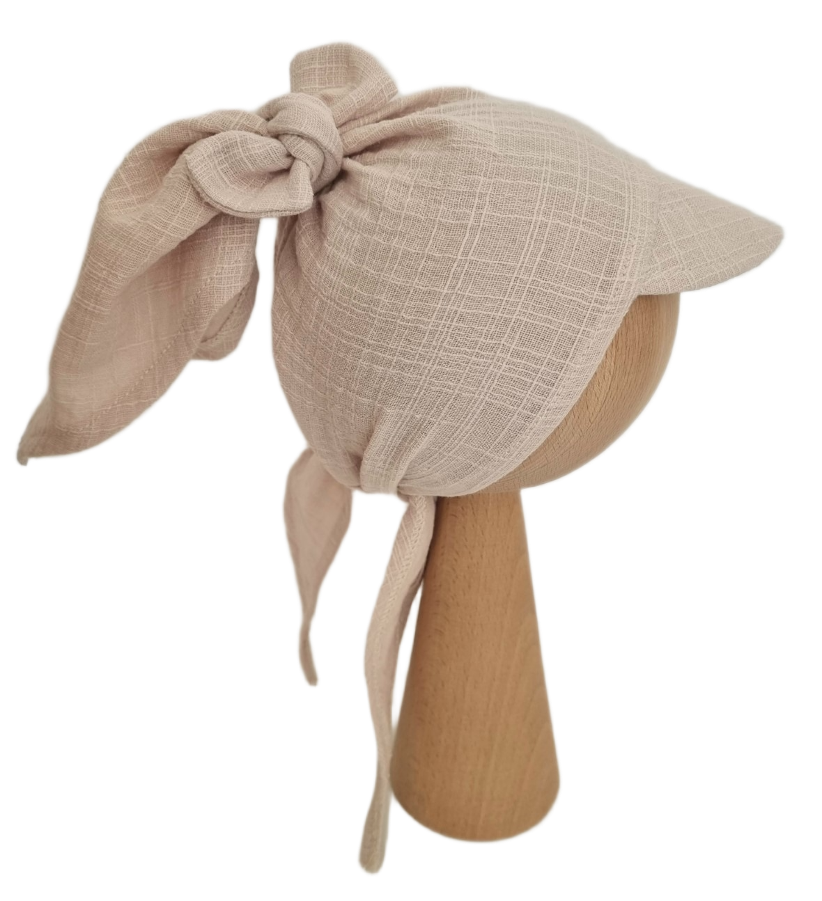 MUŚLIN LEN CHUSTKA Z DASZKIEM WIĄZANA Beż
