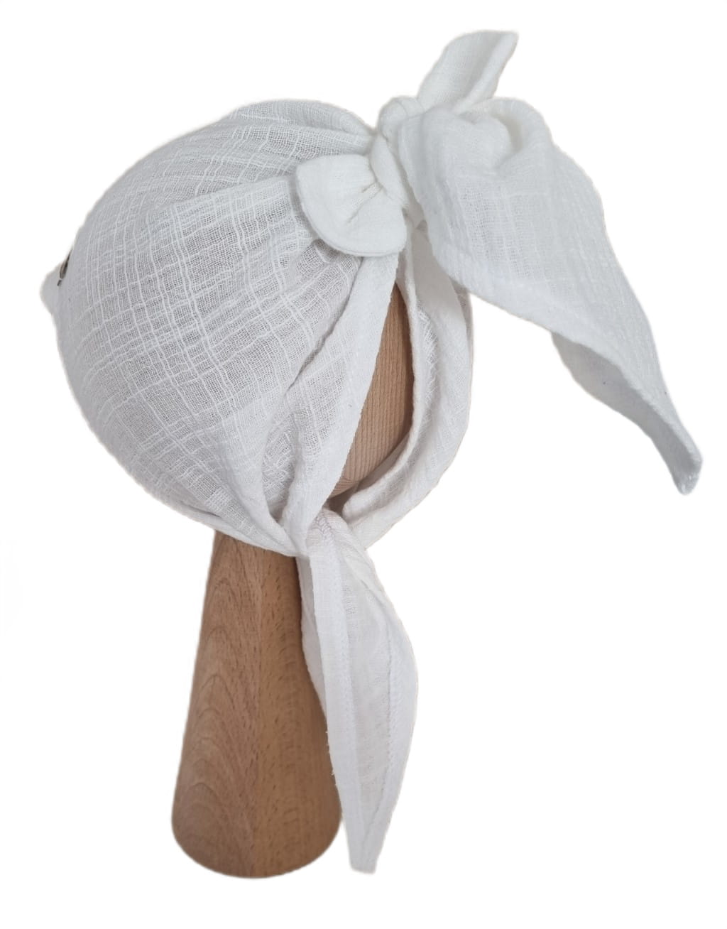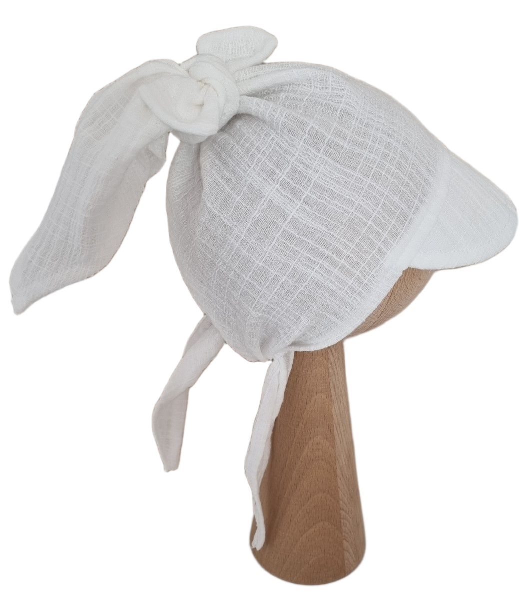 MUŚLIN LEN CHUSTKA Z DASZKIEM WIĄZANA Biel