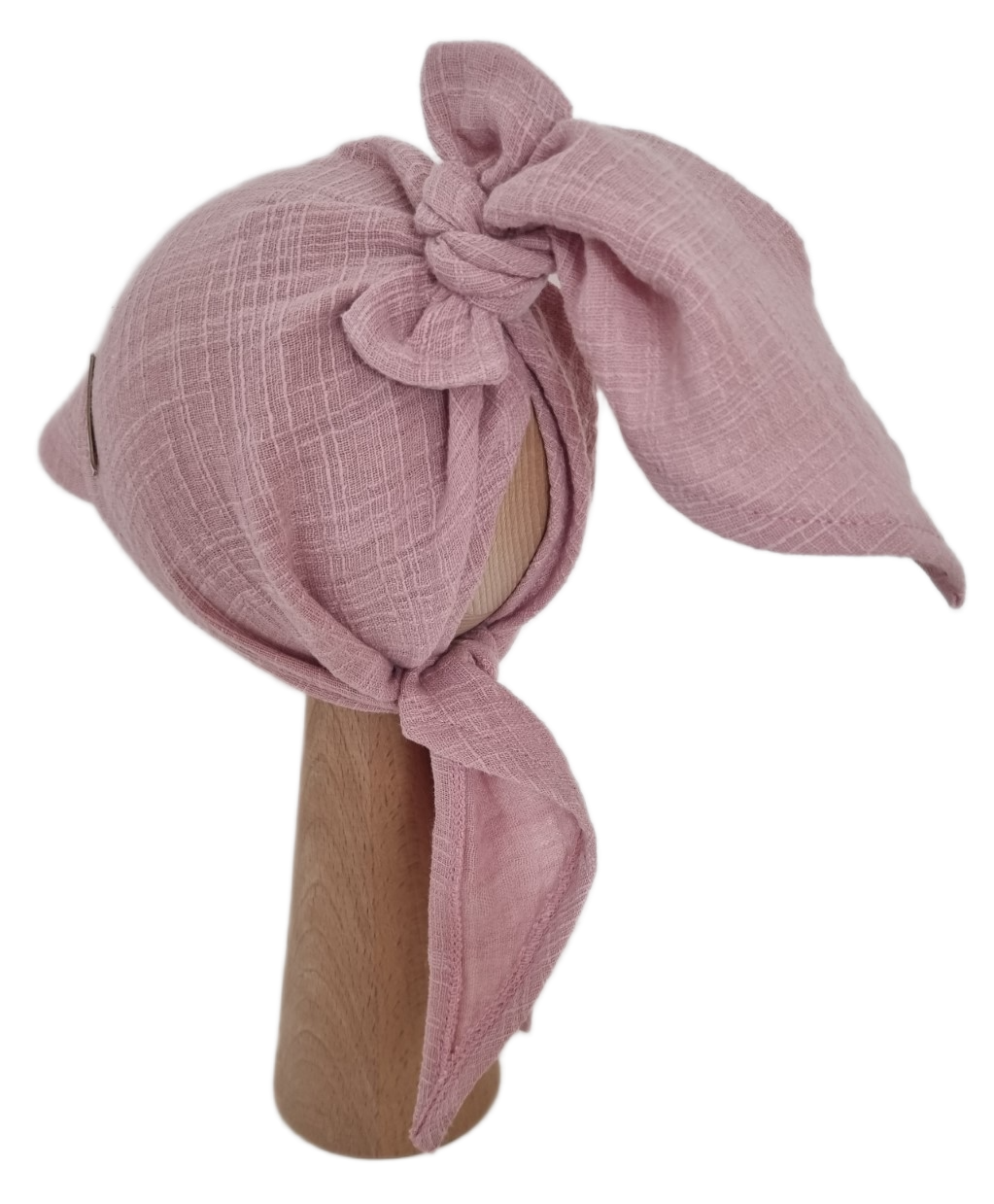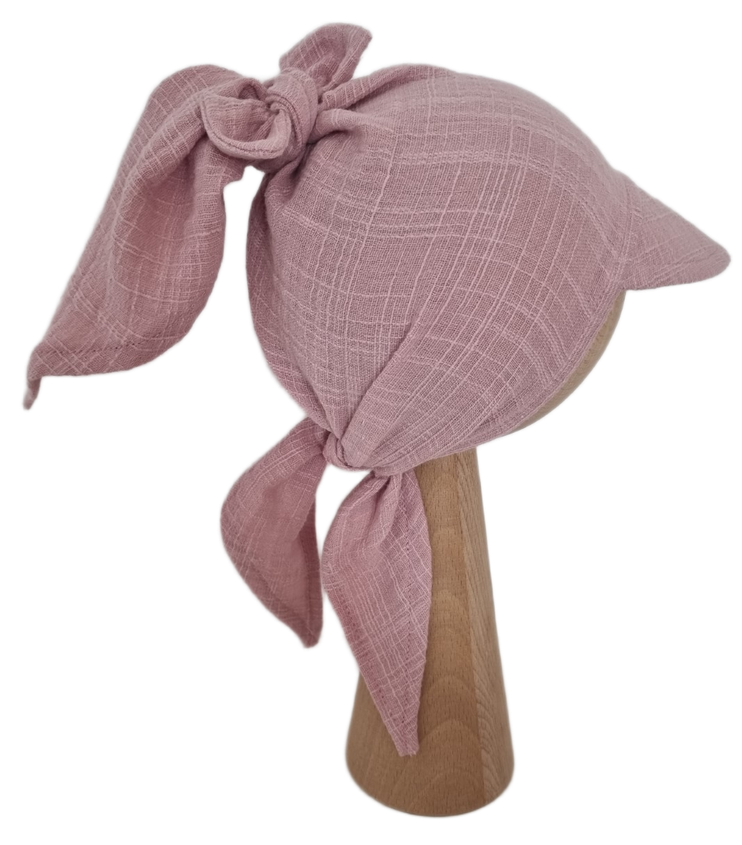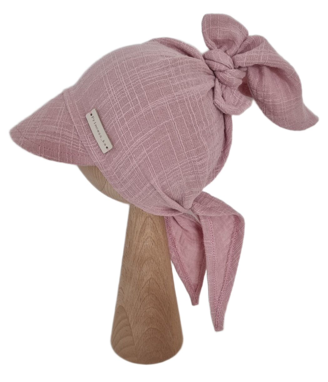MUŚLIN LEN CHUSTKA Z DASZKIEM WIĄZANA Pudrowy Róż