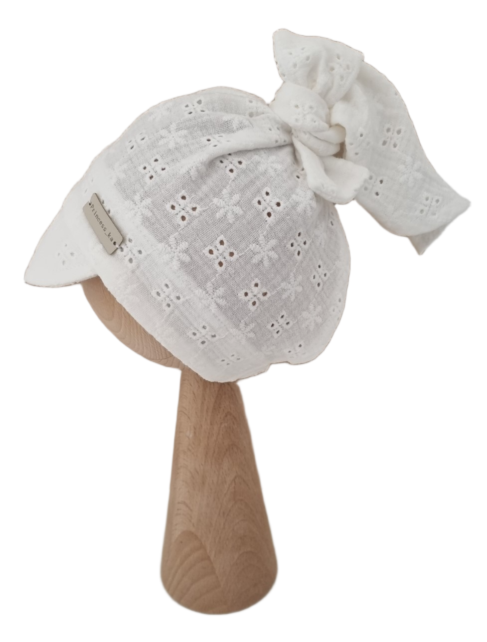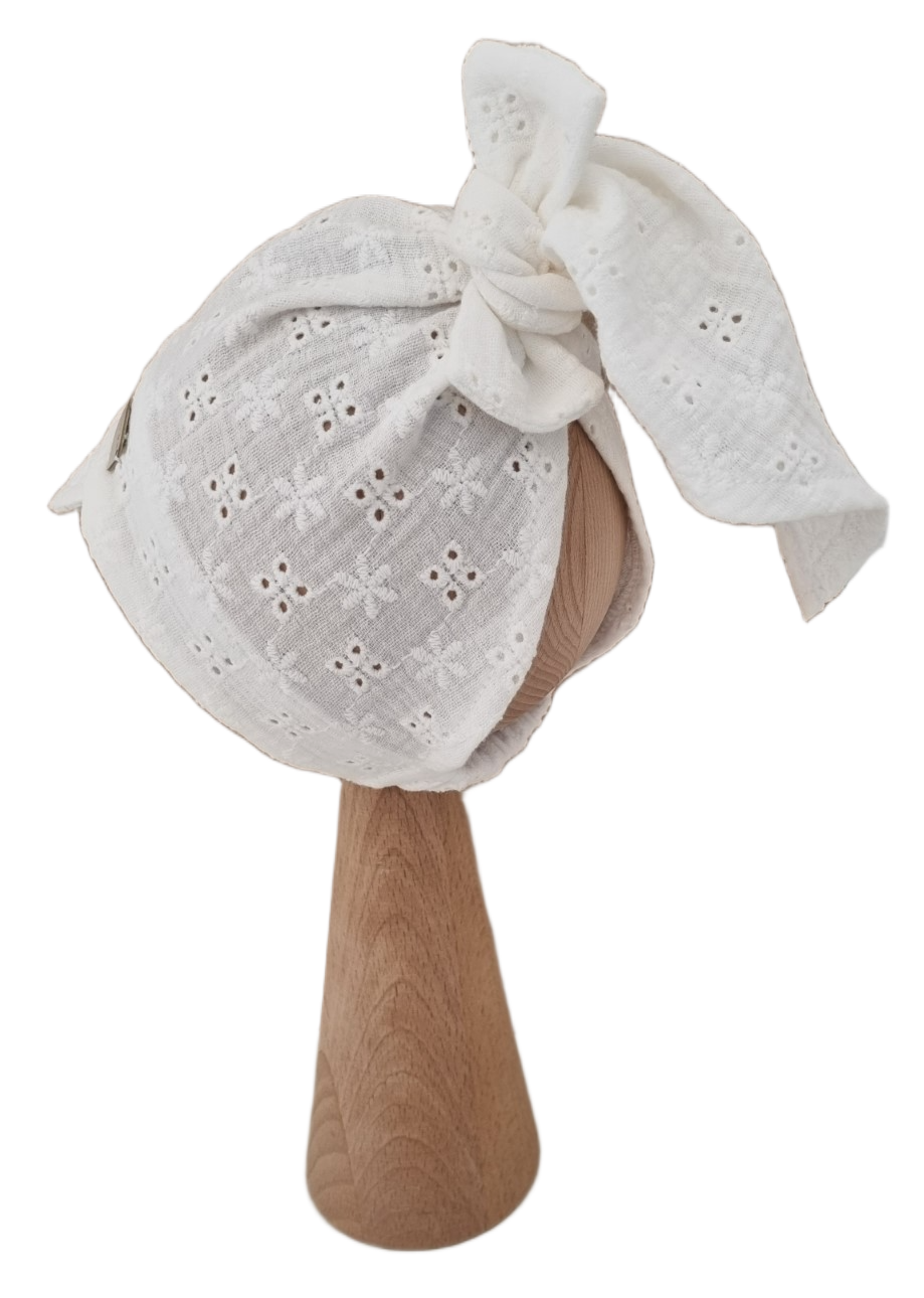 MUŚLINOWA CHUSTKA Z DASZKIEM NA GUMCE Haftowana Śmietankowa Biel