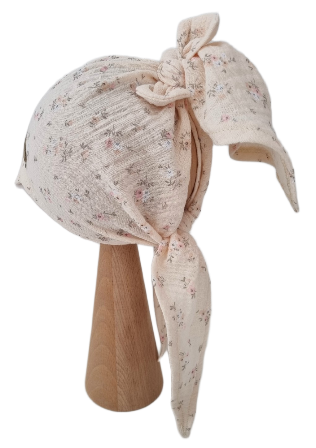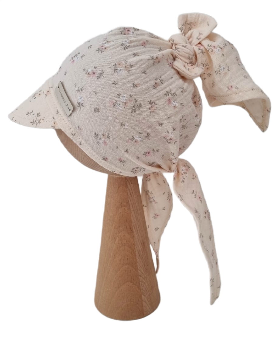 Muślinowa chustka z daszkiem idealnie osłoni główkę przed słońcem, zapewniając komfort zabaw na świeżym powietrzu.