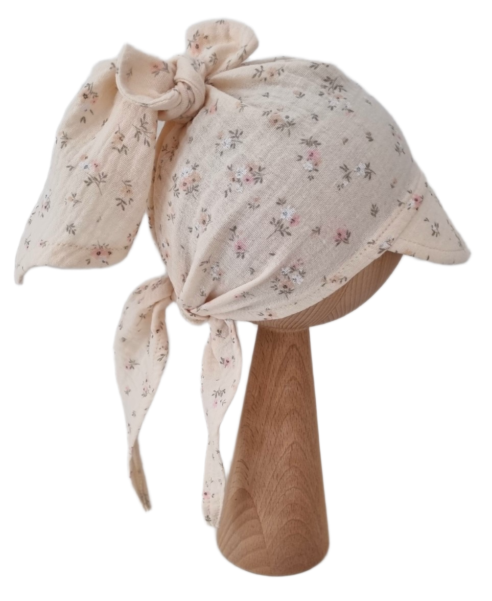 MUŚLINOWA CHUSTKA Z DASZKIEM WIĄZANA Delikatne Kwiatki