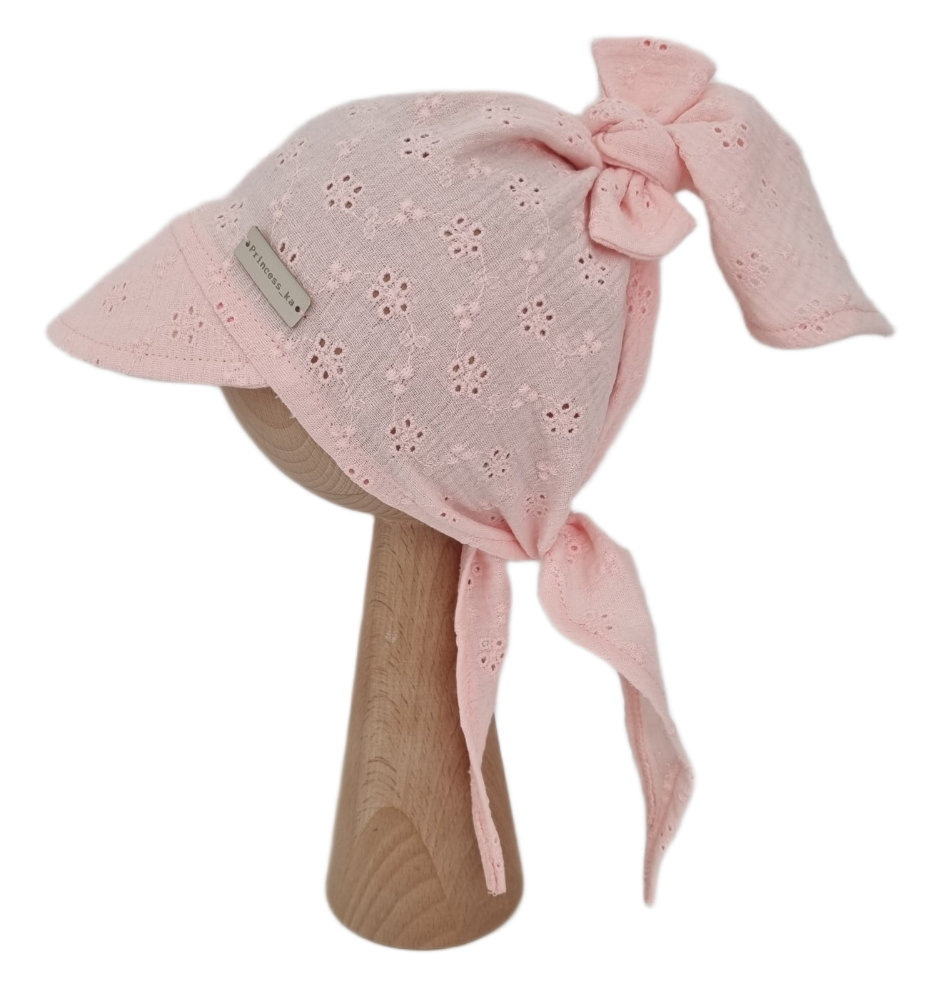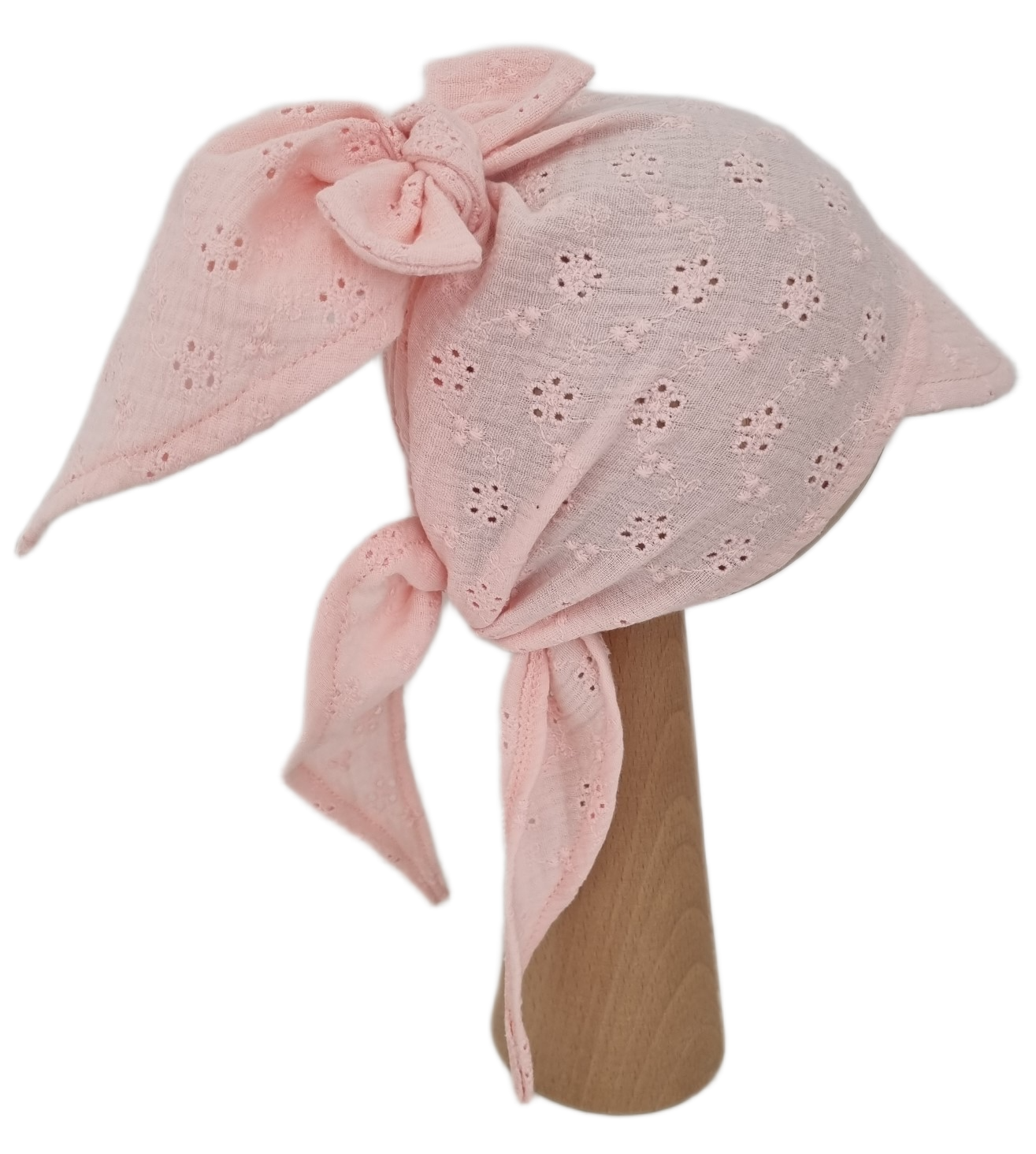 MUŚLINOWA CHUSTKA Z DASZKIEM WIĄZANA Haftowana Jasny Róż