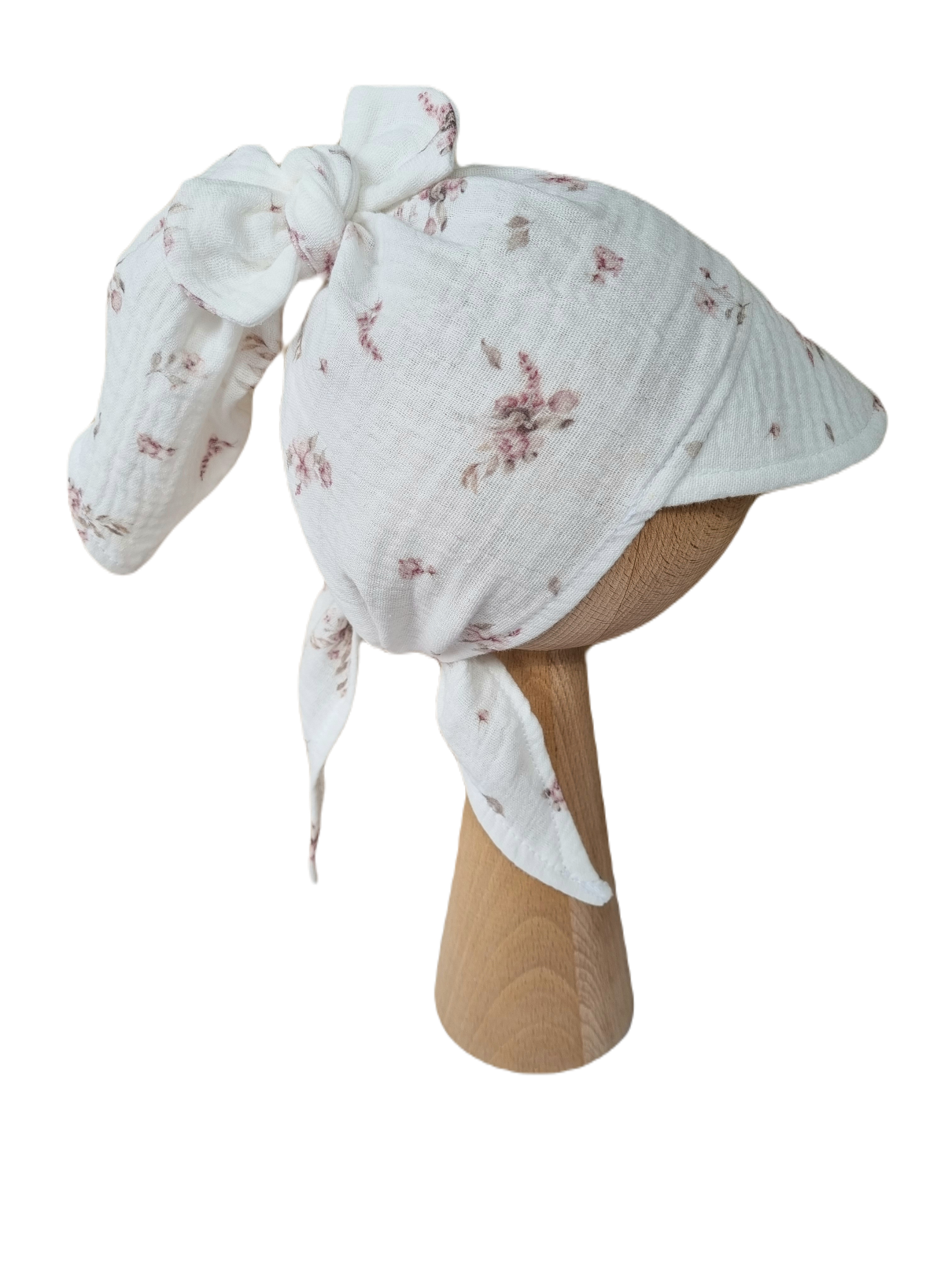 Muślinowa chustka z daszkiem idealnie osłoni główkę przed słońcem, zapewniając komfort zabaw na świeżym powietrzu.