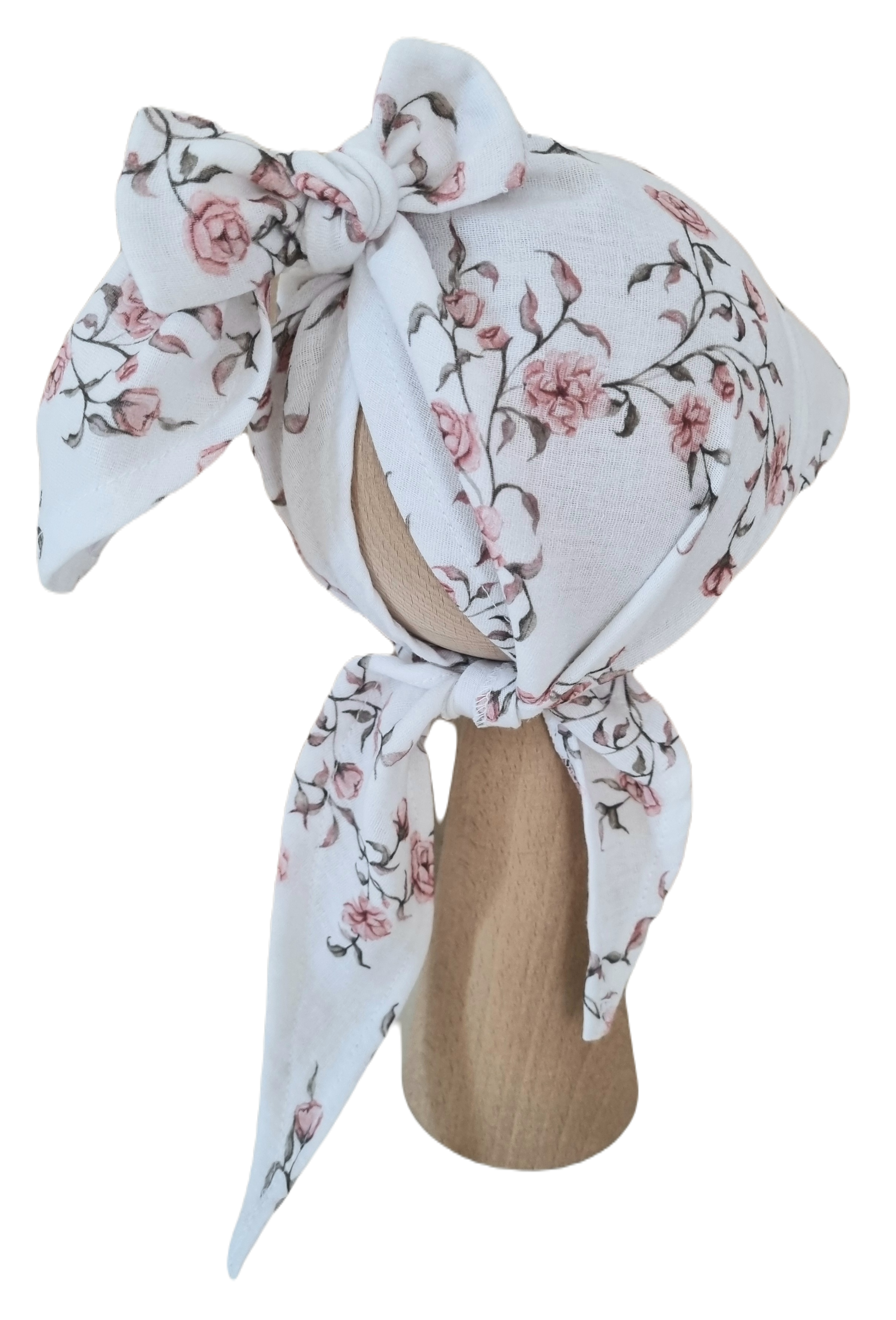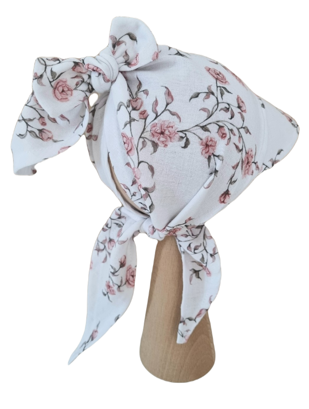 MUŚLINOWA CHUSTKA Z DASZKIEM WIĄZANA Zaplątane Kwiatki