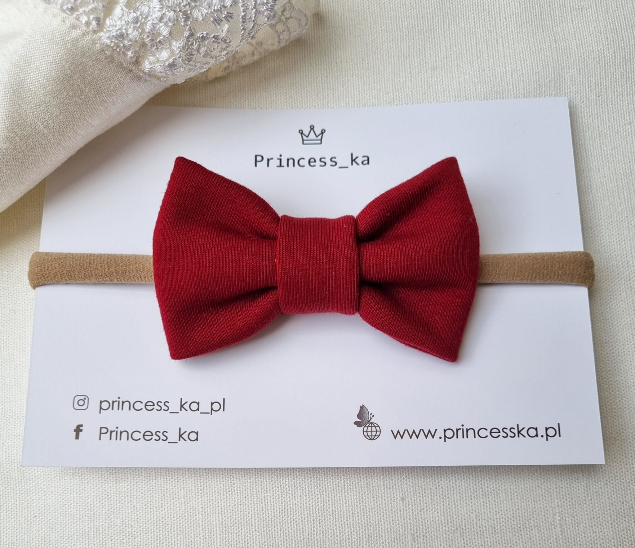 Bordowa Kokardka umocowana na opasce bezuciskowej to nasza świąteczna propozycja, która z pewnością dopełni każdą dziecięcą stylizację.
