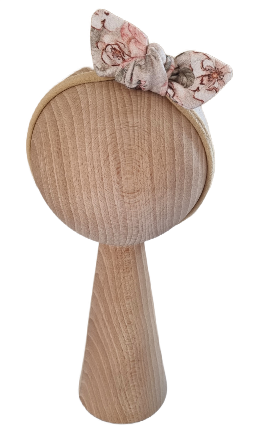 OPASKA MOTYLEK - pięknie prezentująca się kokarda MOTYLEK o wymiarach 3x8 cm. Umocowana na rozciągliwej opasce bezuciskowej, dzięki czemu pasuje zarówno na malutkie jak i na większe główki.