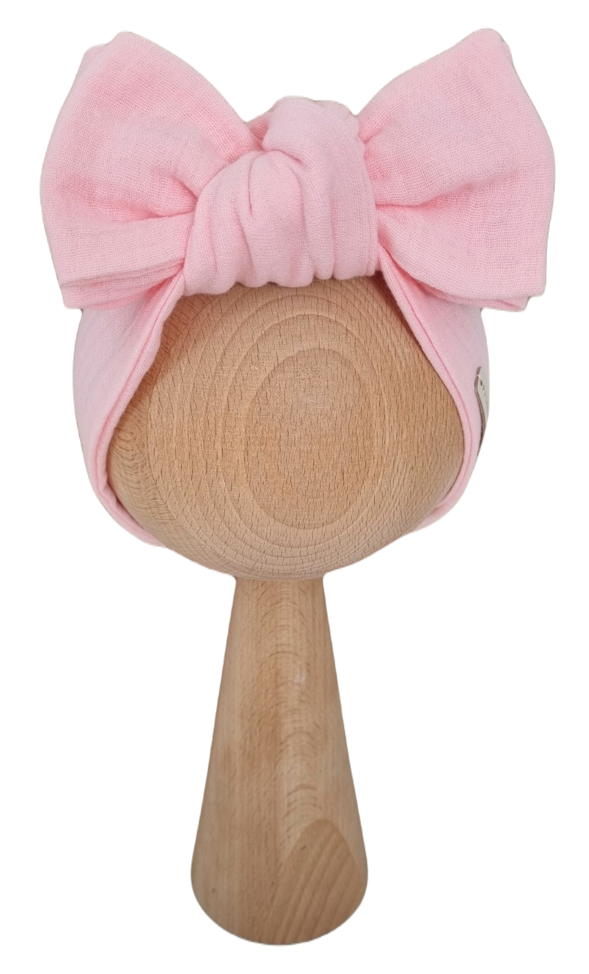 MUŚLINOWA OPASKA KOKARDA - opaska wywiązana w piękną kokardę, która doda uroku każdej maleńkiej główce.