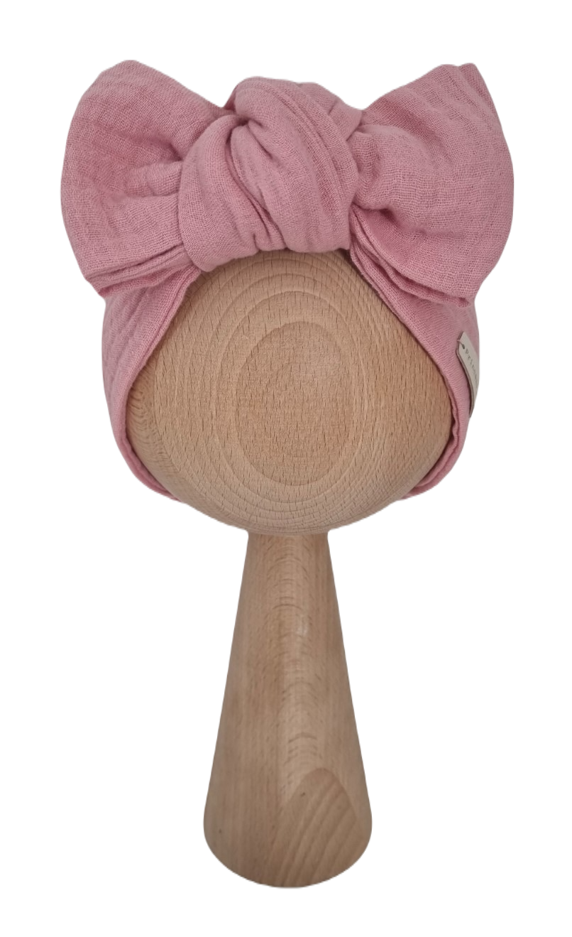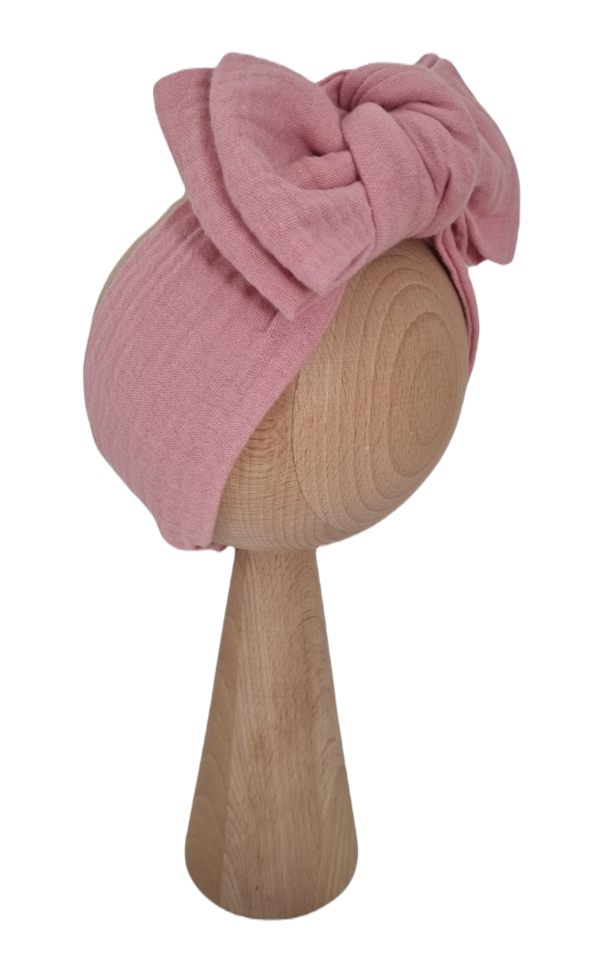 MUŚLINOWA OPASKA KOKARDA - opaska wywiązana w piękną kokardę, która doda uroku każdej maleńkiej główce.