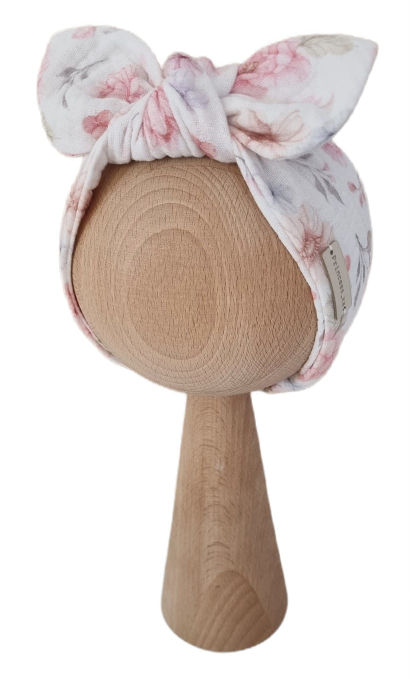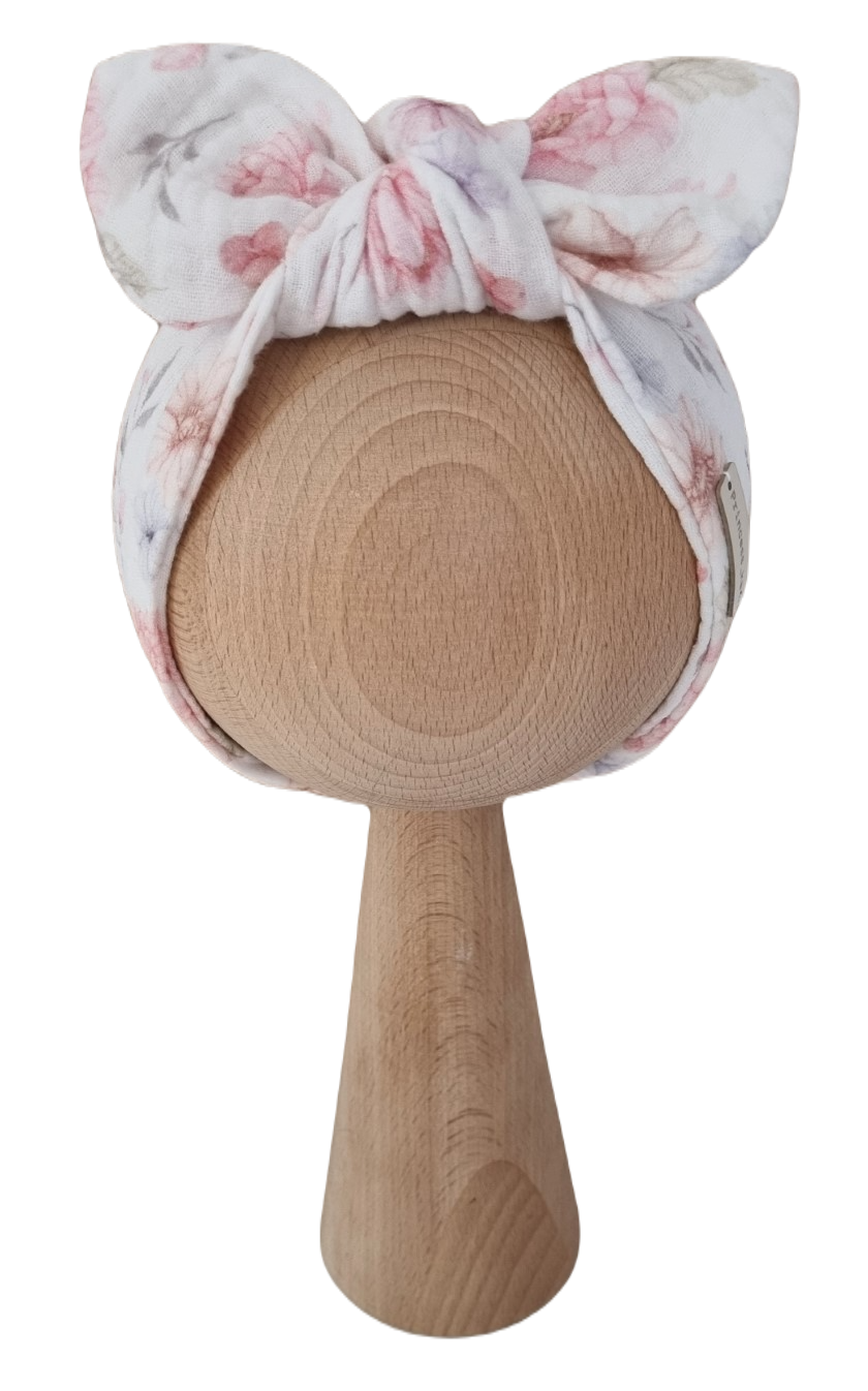 Dodatkowo z tyłu opaska ma wszytą gumę, dzięki czemu jest elastyczna i doskonale dopasowuje się do główki dziecka.