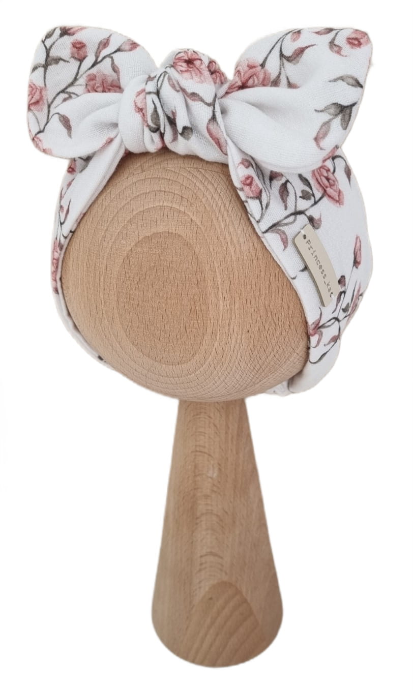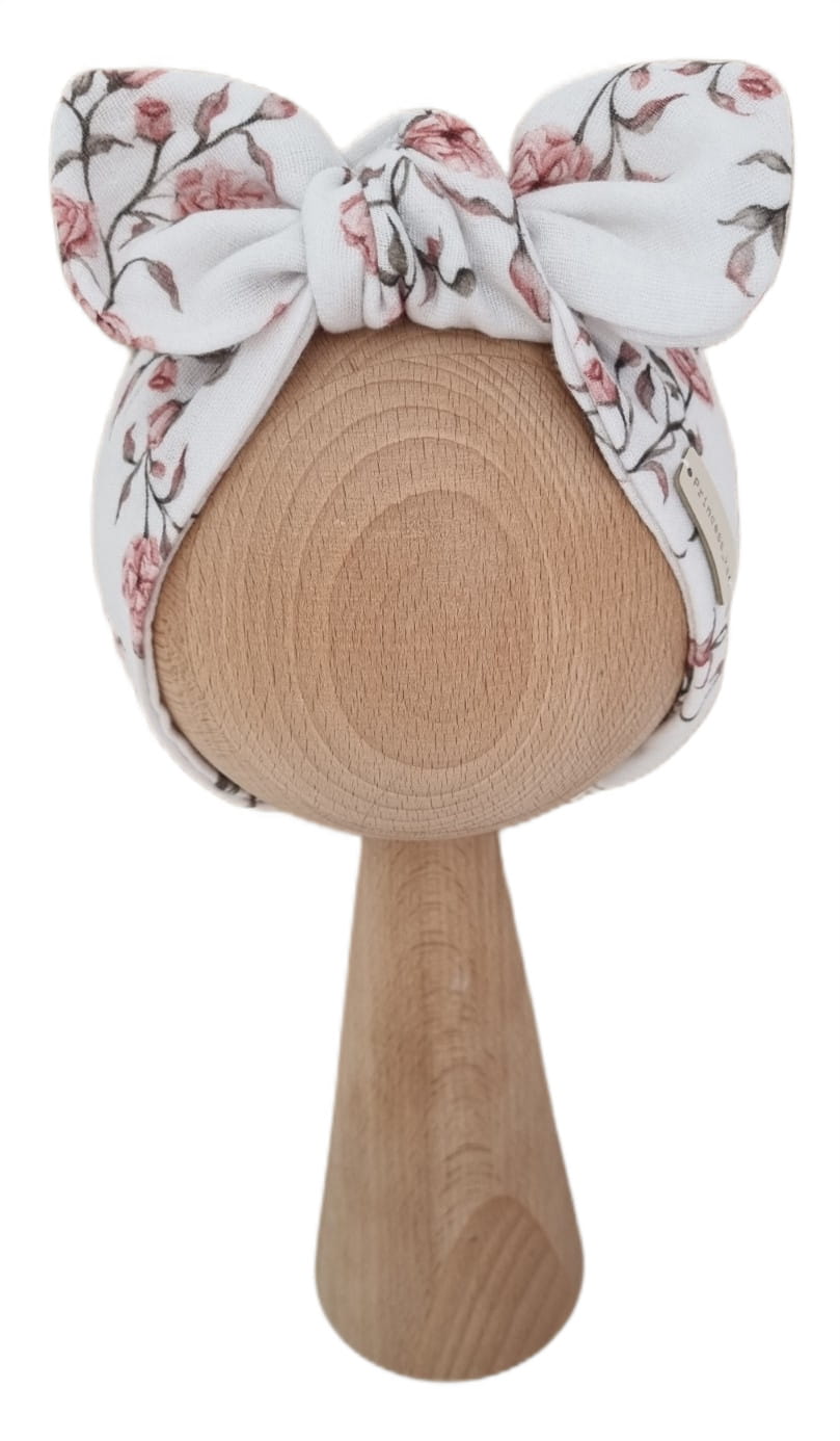 Dodatkowo z tyłu opaska ma wszytą gumę, dzięki czemu jest elastyczna i doskonale dopasowuje się do główki dziecka.
