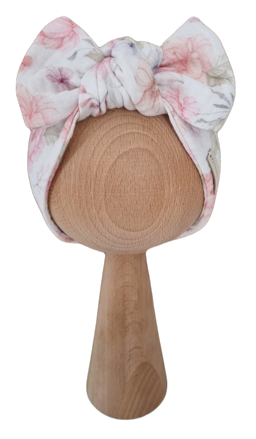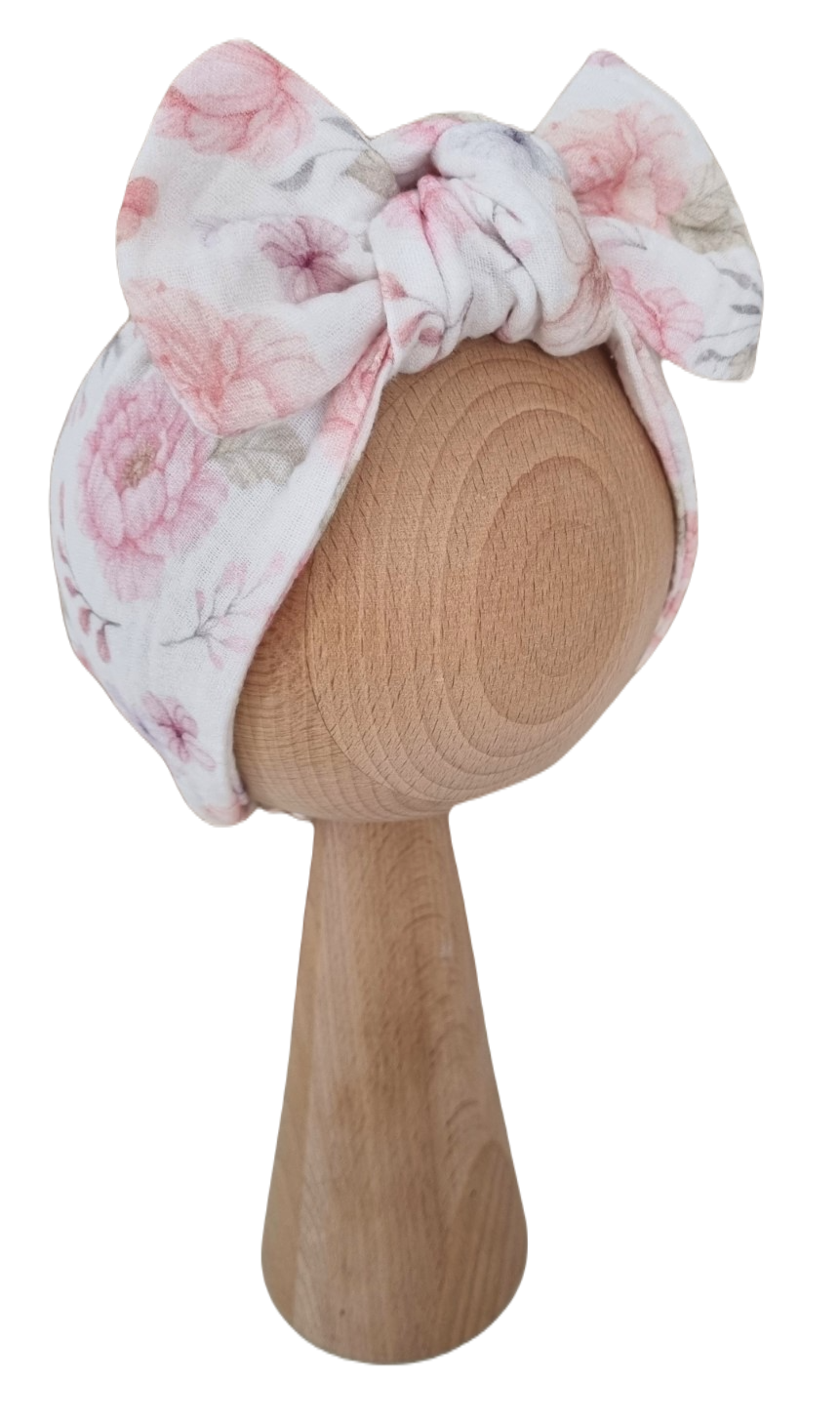 Dodatkowo z tyłu opaska ma wszytą gumę, dzięki czemu jest elastyczna i doskonale dopasowuje się do główki dziecka.