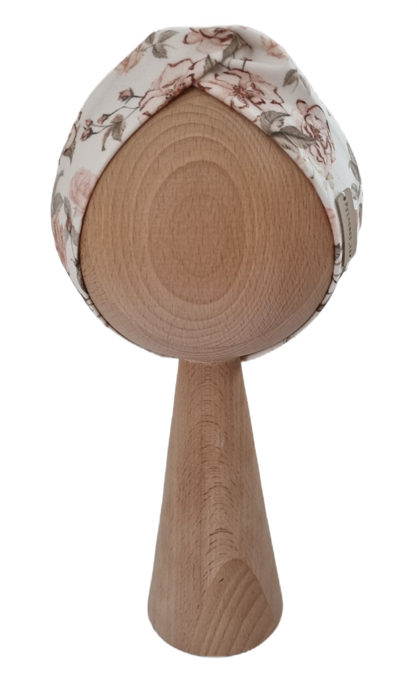 KOMPLET TURBAN POJEDYNCZY DONUT I CHUSTA Herbaciane Róże Beż