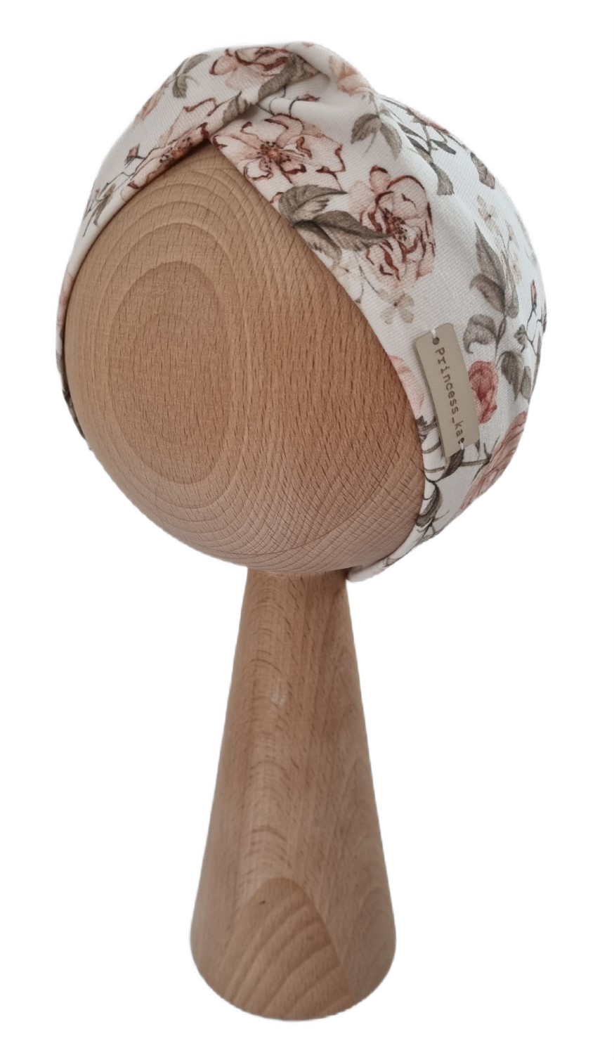 KOMPLET TURBAN POJEDYNCZY DONUT Magnolie na Bieli I CHUSTA Muślinowa Ecru Z CHWOSTAMI Pustynny Róż